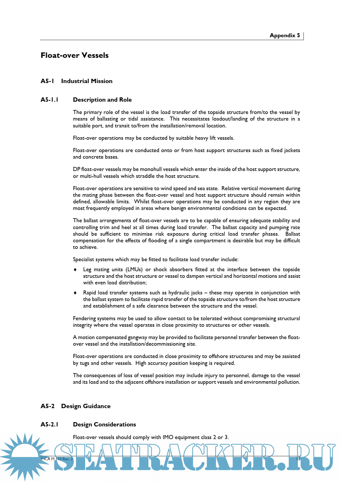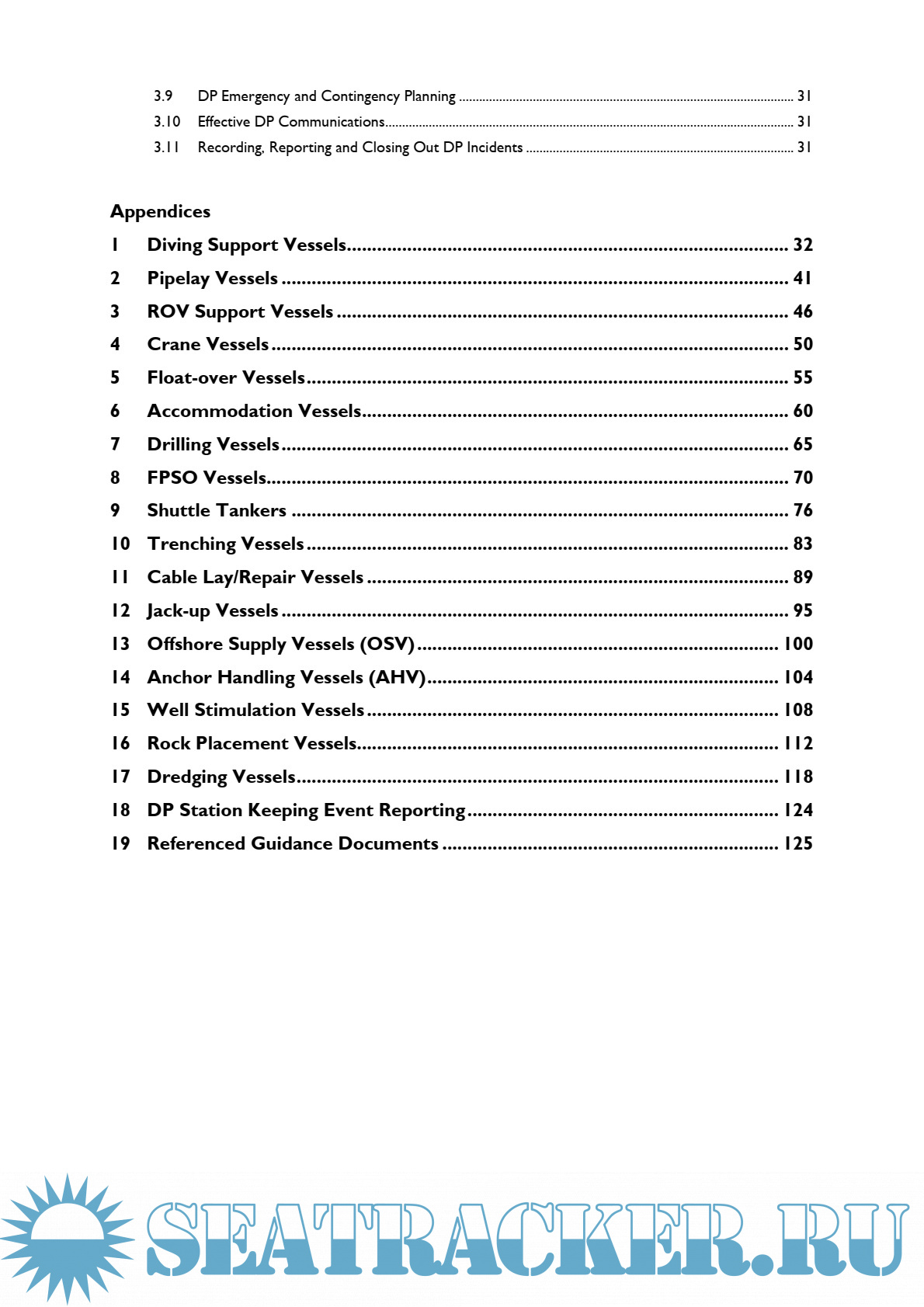 The vessel type-specific guidance focuses on the industrial mission of the vessel and the impact that this has on its design and operation. A brief description of the industrial mission is included for each vessel in order to better explain the technical and operational guidance and to give an indication of the risks associated with an inability to maintain position.