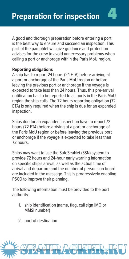 This guide will provide general advice and help you to comply with regulations when calling at a port or anchorage within the Paris MoU region.