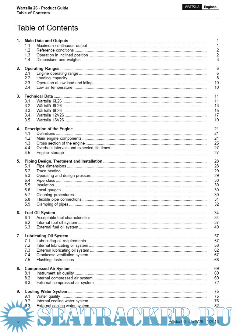 Description: This Product Guide provides data and system proposals for the early design phase of marine engine installations. This 1/2013 issue replaces all previous issues of the Wartsila 26 Project Guides.