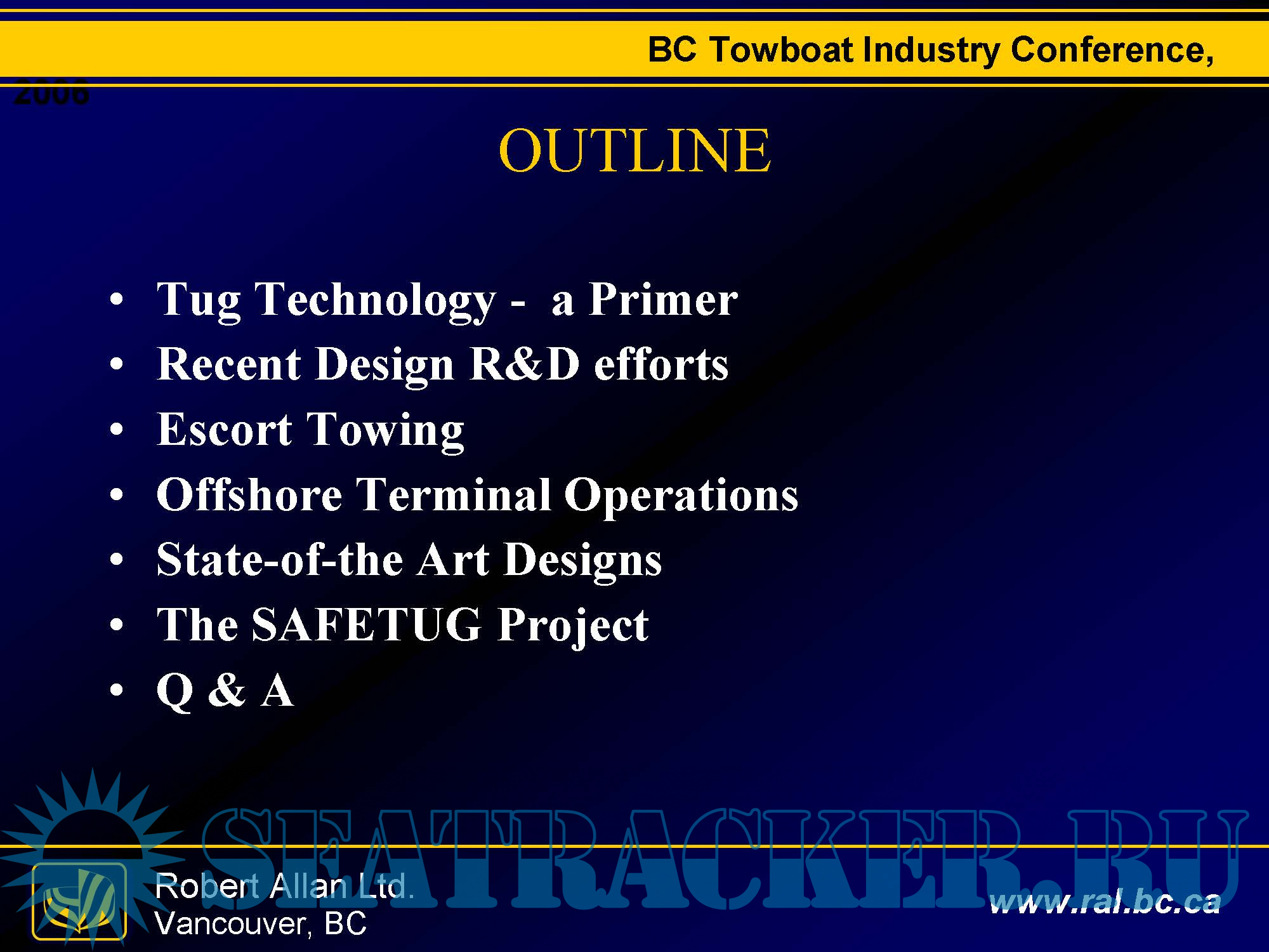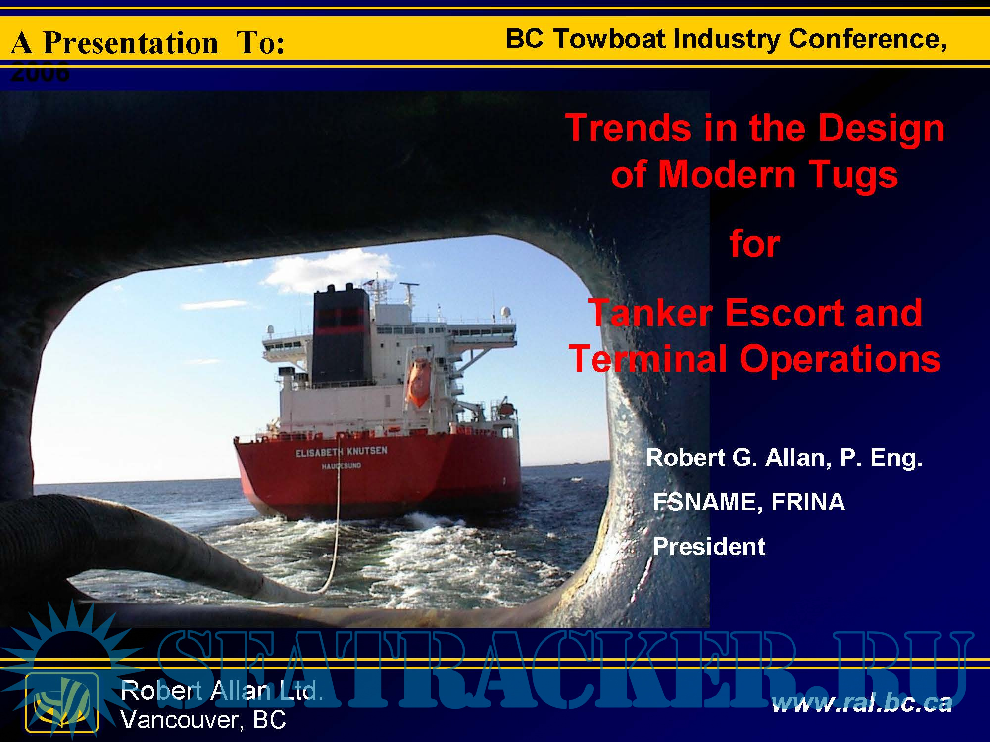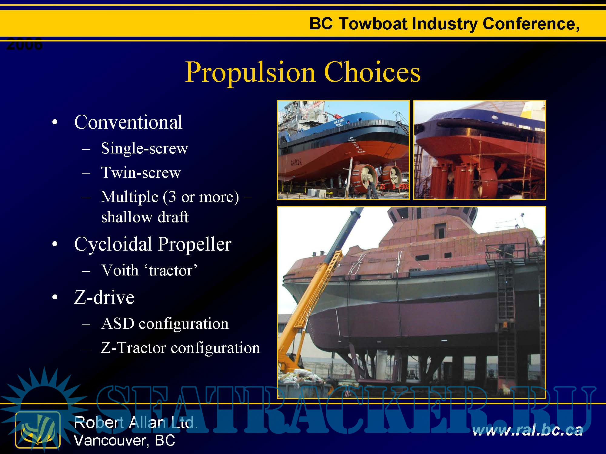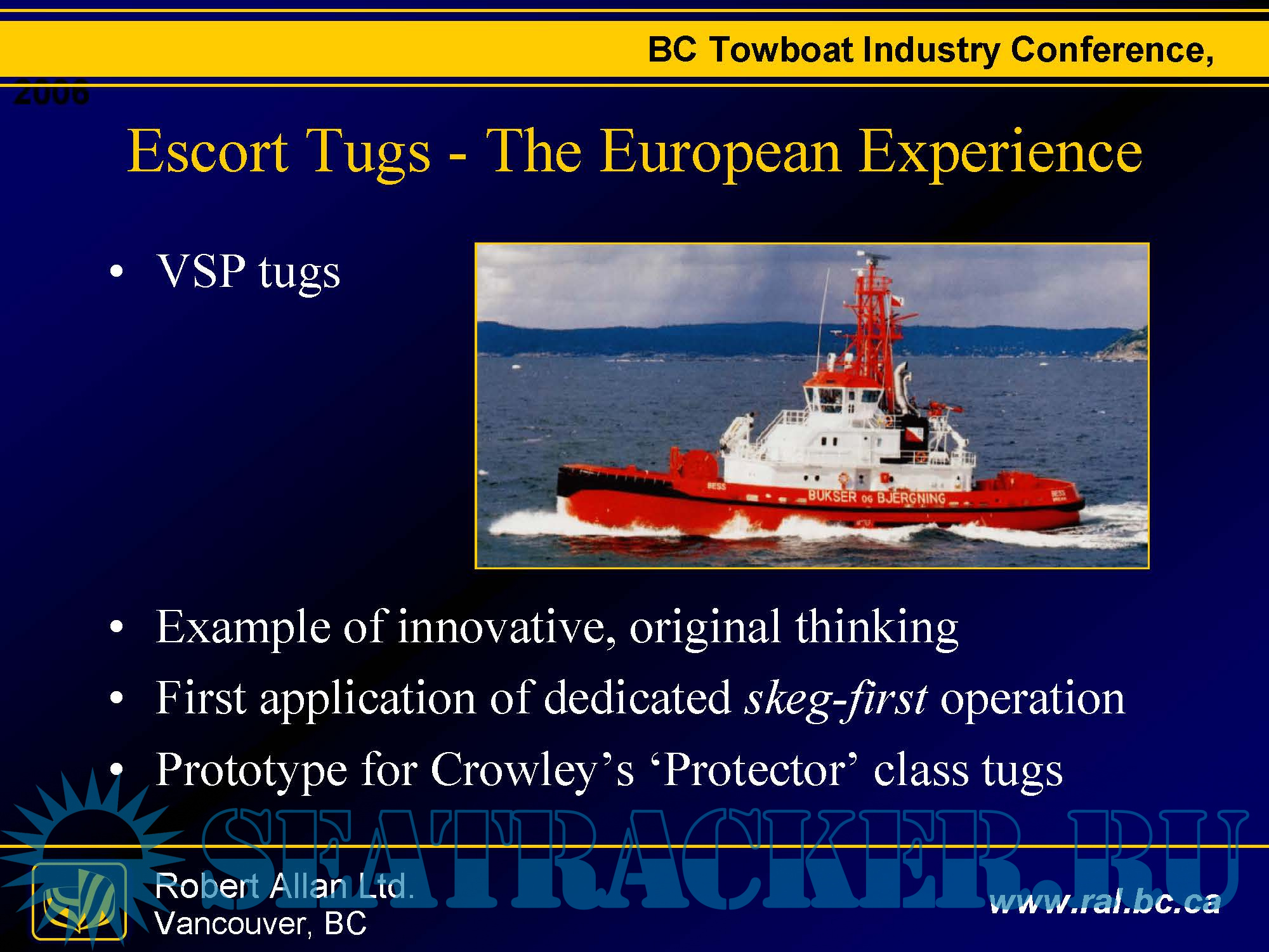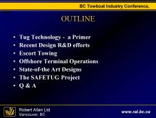 Description: A presentation by Robert Allan Ltd. to BC Towboat Industry Conference about Tugboat Technology.