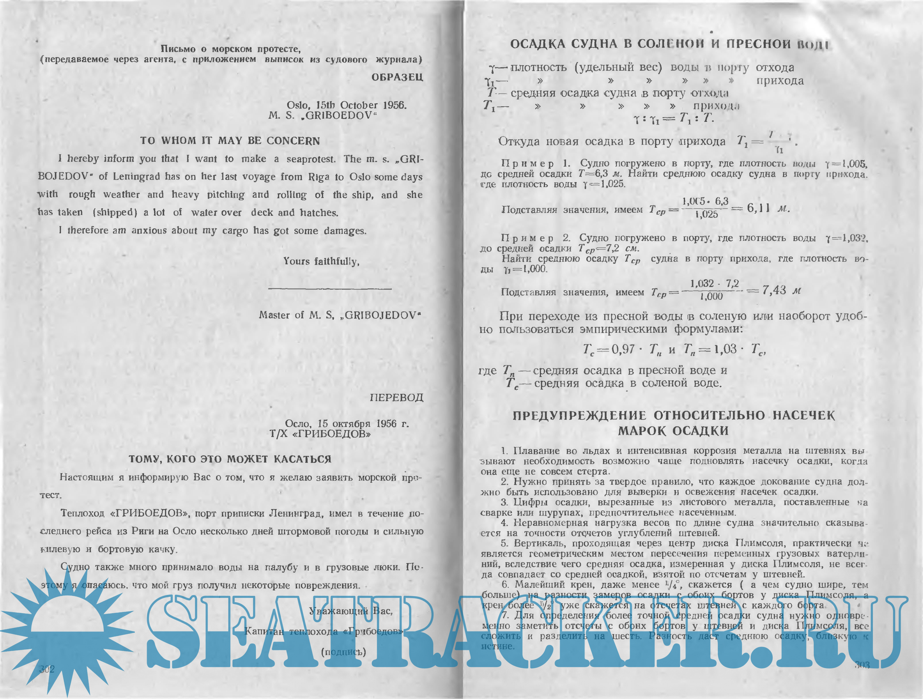 Год выпуска: 1958 Язык: русский Автор: Шеховцов А.Л. Жанр: Справочное издание Издательство: Морской транспорт Формат: PDF Качество: Отсканированные страницы Количество страниц: 352 Описание: Первая часть включает формы для сухогрузных, наливных, рефрижераторных судов и ледоколов. Вторая часть включает необходимые в повседневной работе формулы, схемы, таблицы и различные сведения для решения вопросов, связанных с эксплуатацией судна. Справочник рассчитан на капитанов и штурманов морского флота.