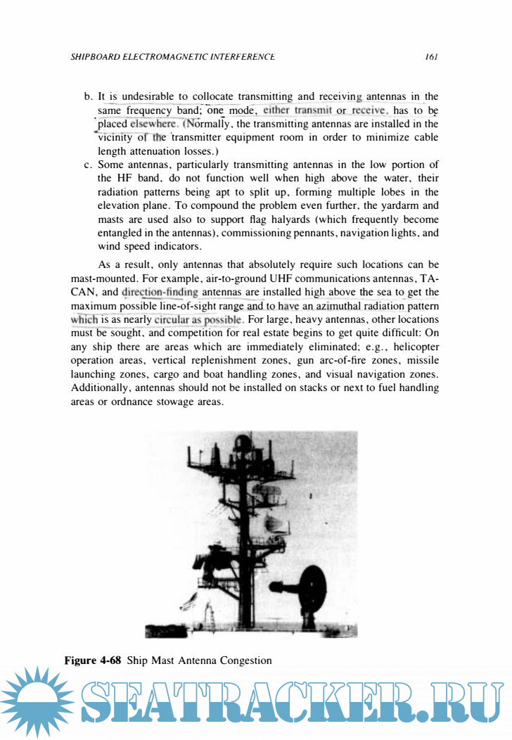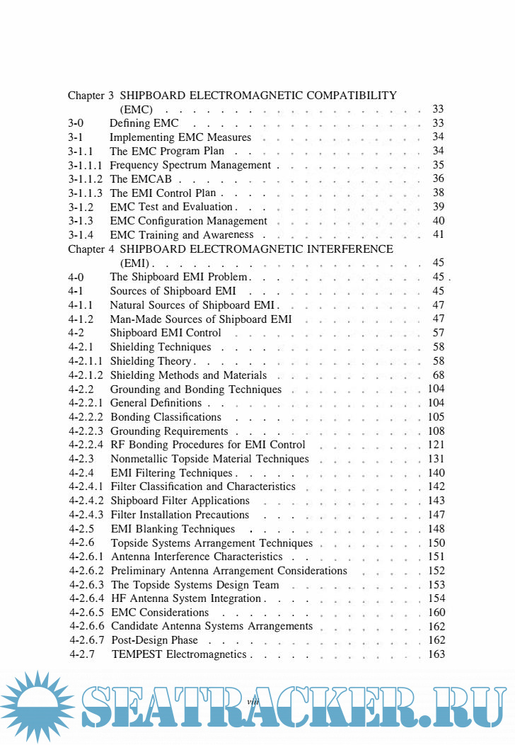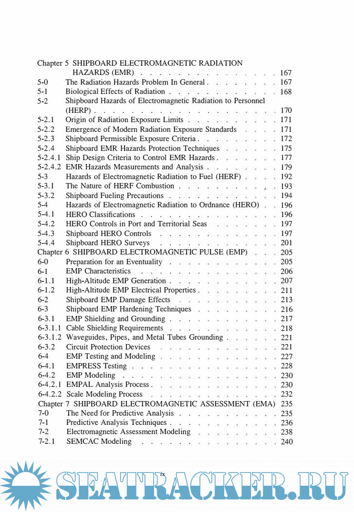 Year: 1987 Language: english Author: Law P.E. Publisher: Artech House ISBN: 0-89006-247-1 Format: PDF Quality: Scanned pages Pages count: 279 Description: Electromagnetics, in the special sense that we will be concerned with in this book, is the interaction of electric and magnetic fields associated with radiated energy - i.e., energy in the form of radiated electromagnetic fields. As such, the principal topic of interest here will be shipboard devices that emit or sense electromagnetic waves in the radio-frequency spectrum from extremely low frequencies through extremely high-frequency microwave. Other portions of the electromagnetic spectrum such as light waves (e. g. , infrared and fiber optics) will not be addressed in depth. This book endeavors to discuss each of the chief concerns of shipboard electromagnetics and to show how the problems of compatibility and interference are resolved. It is hoped that in this manner the book will provide much needed understanding and assistance to naval engineers working in ship systems design and operations.