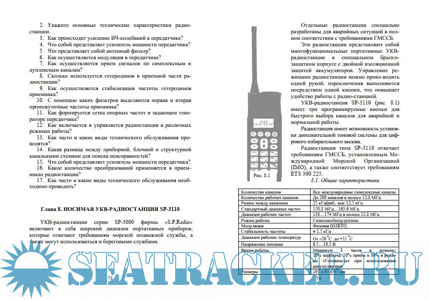 Описание: Учебное пособие содержит сведения об основных технических характеристиках, устройстве, работе, способах управления и особенностях структурных схем распространенных на судах морского и рыбопромыслового флота судовых УКВ-радиостанций. Учебное пособие предназначено для курсантов направления 552500 "Радиотехника", изучающих дисциплины "Радиооборудование судов" и "Техническая эксплуатация транспортного радиооборудования", а также для курсантов специальности 240200 "Судовождение", изучающих дисциплину "Радионавигация и радиосвязь".
