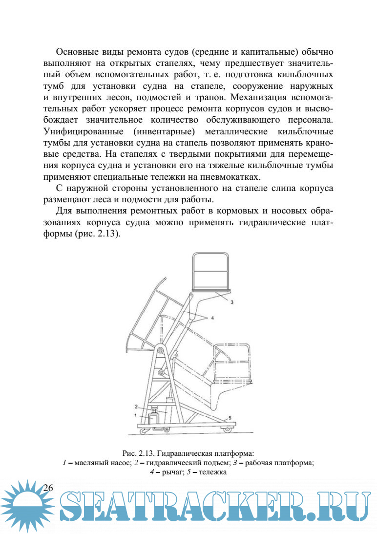Год выпуска: 2017 Язык: русский Автор: Качанов И.В., Шаталов И.М., Якимович А.М. Жанр: Учебное пособие Издательство: БНТУ ISBN: 978-985-550-609-7 Формат: PDF Качество: Изначально компьютерное (eBook) Количество страниц: 117 Описание: Учебно-методическое пособие по дисциплине «Оборудование судоремонтного производства» представляет практический интерес для студентов таких специальностей, как «Кораблестроение и техническая эксплуатация водного транспорта», «Водохозяйственное строительство», «Порты и портовые сооружения» и т. д., полностью соответствует типовой учебной программе читаемой дисциплины, которая преподается студентам специальности 1-37 03 02 «Кораблестроение и техническая эксплуатация водного транспорта». Кратко изложены виды судоремонтного производства и основные технологии, техника, станки и инструменты, применяемые в этой области судостроения.