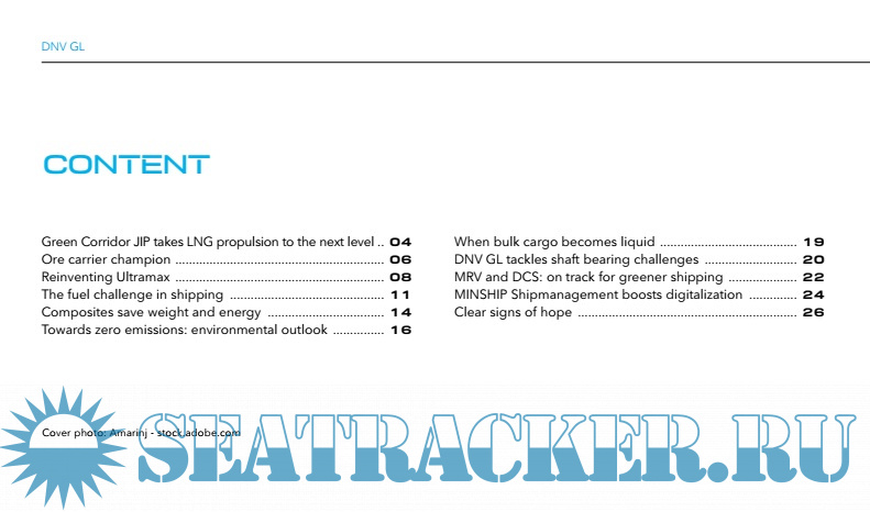 Year: 2018 Language: english Author: DNVGL Format: PDF Quality: eBook Pages count: 28 Description: To support the industry in complying with the new environmental regulations, especially those focusing on air emissions, DNV GL participates in several joint industry projects (JIP) to help develop new, compliant designs that will give shipping a “greener footprint”. In this issue of BULK CARRIER UPDATE, I would like to direct your particular attention to: - the recent delivery of the world’s largest dry cargo vessel – Yuan He Hai, a 400,000 dwt ore carrier with innovative design features such as gas-ready. Also, as a specially constructed or fitted cargo ship she will be able to safely carry ore with a high moisture content - the current status of the Green Corridor JIP currently developing an LNG-fuelled VLOC for the Australia-China trade - the next-generation Ultramax bulk carrier with ultra-low fuel consumption at eco-speed – the 63,200 dwt “Diamond 2” Ultramax.