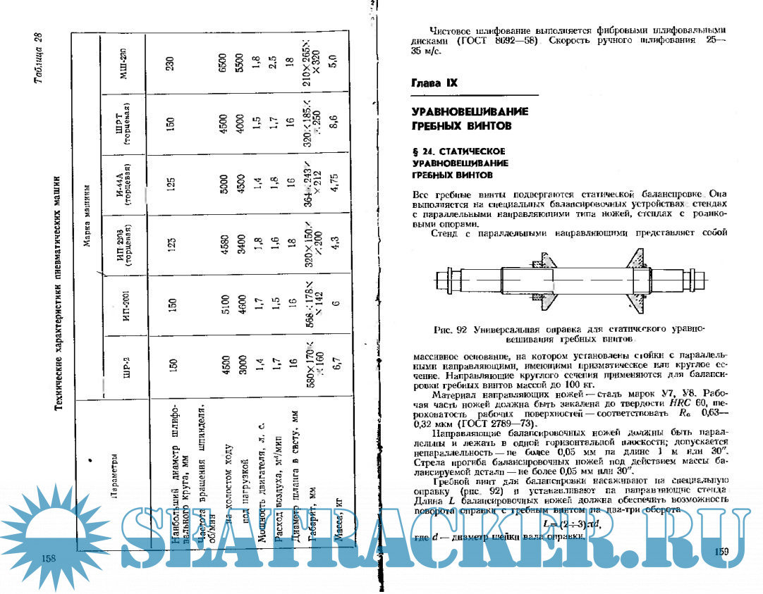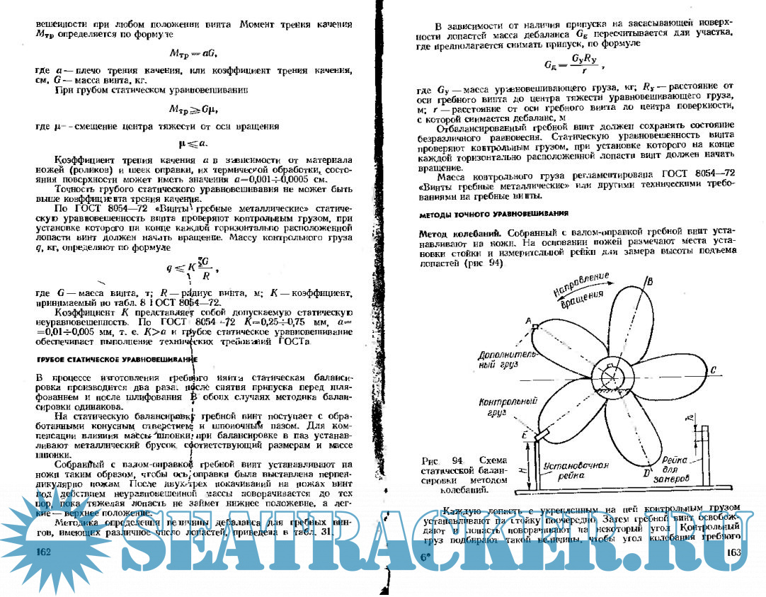 Освещены методы и средства уравновешивания гребных винтов, рассмотрены вопросы механизации ручного труда, а также методы исправления дефектов гребных винтов.