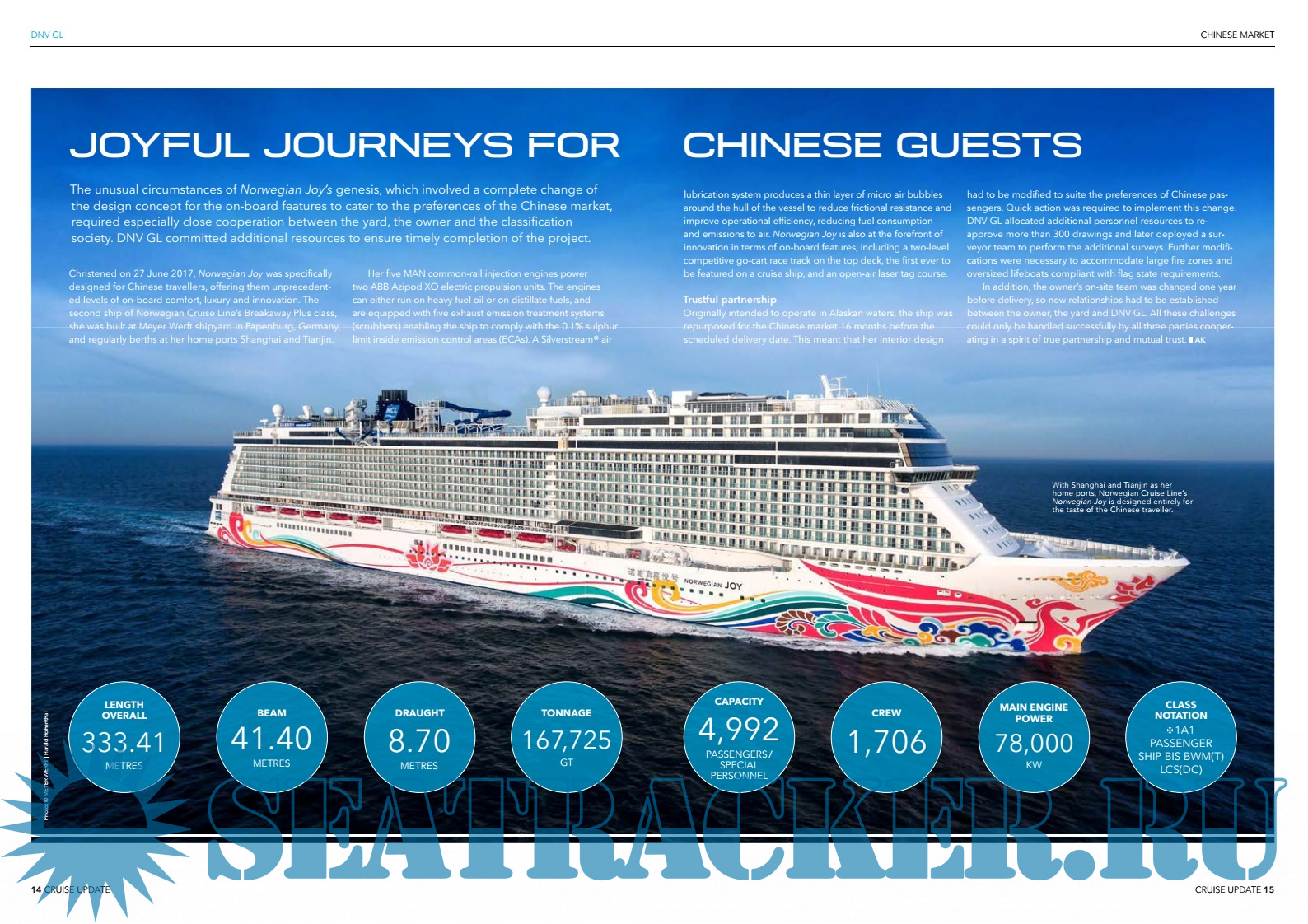 Description: The cruise industry’s growth seems unstoppable, with yard capacity as the only limiting factor. Asia has joined the game – Genting Dream (Dream Cruises) and Norwegian Joy (Norwegian Cruise Line), both built by Meyer Werft, are vessels expressly designed for the burgeoning East Asian market. Meanwhile new yards are entering the market: Norway’s Ulstein Verft brings its unique design expertise and innovative X-BOW® to the expedition vessel segment where fitness for extreme weather and sea conditions are key requirements.