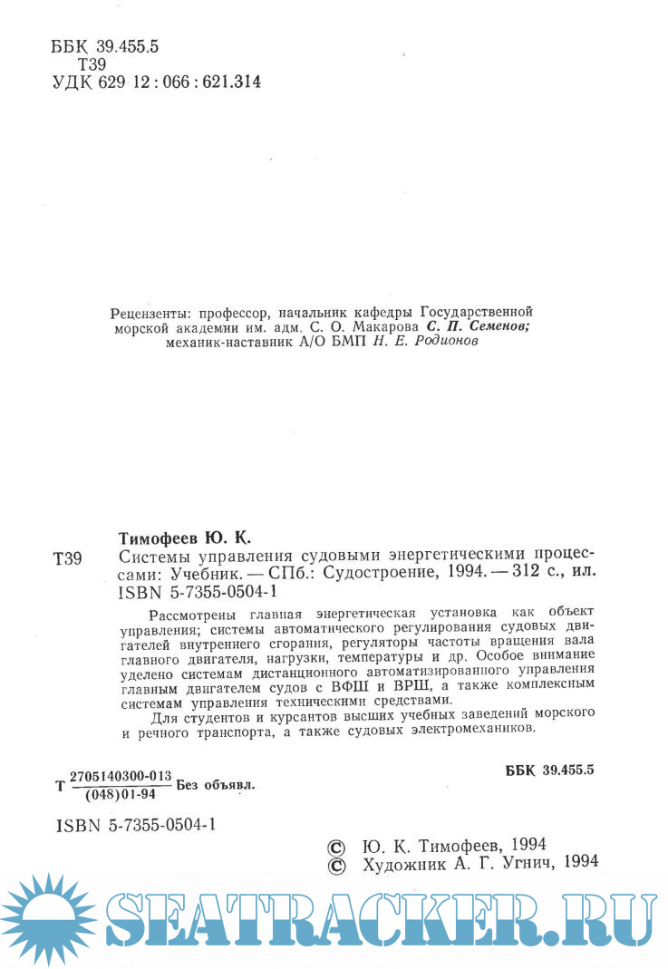 Тимофеев Ю.К. Системы управления судовыми энергетическими процессами