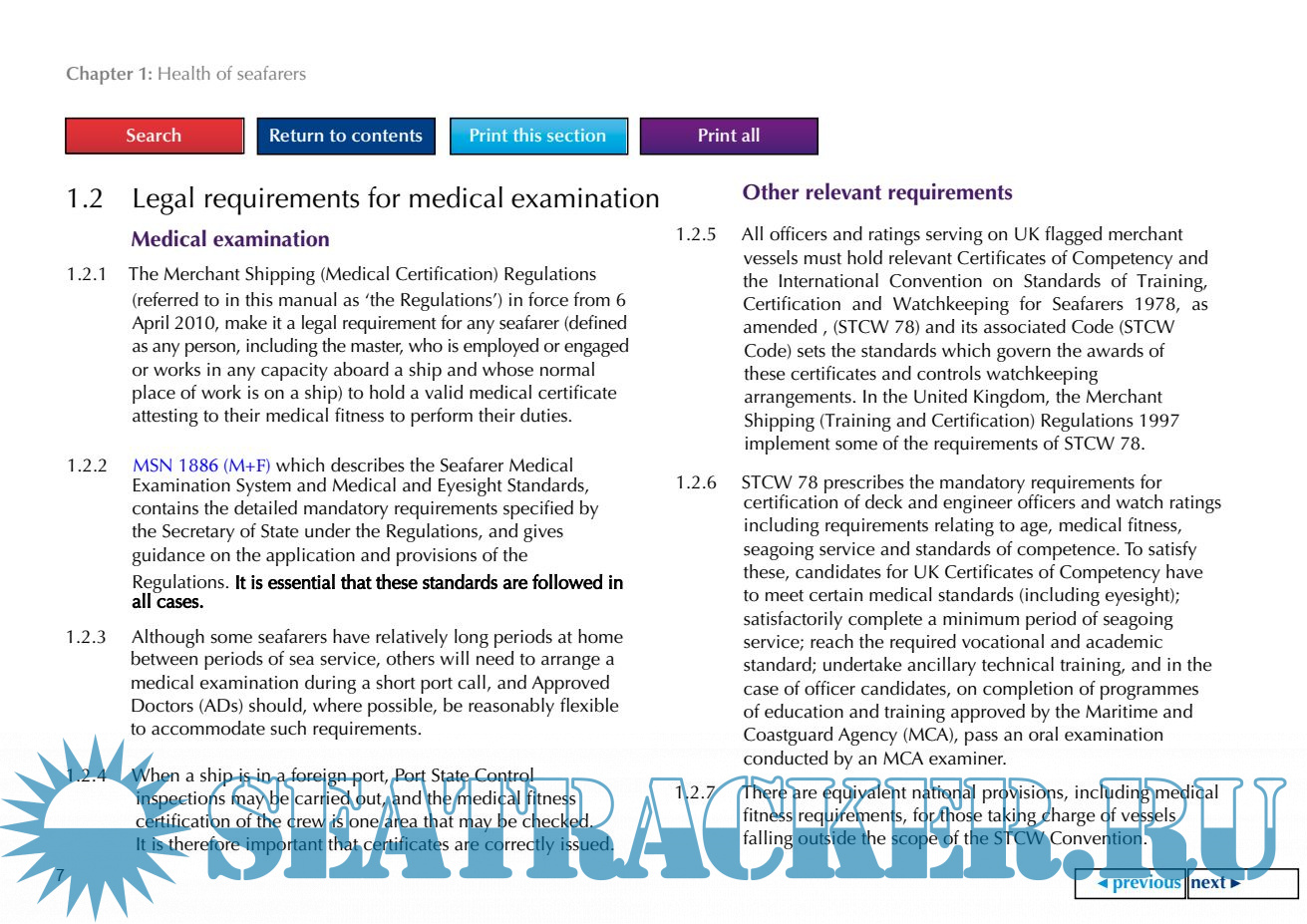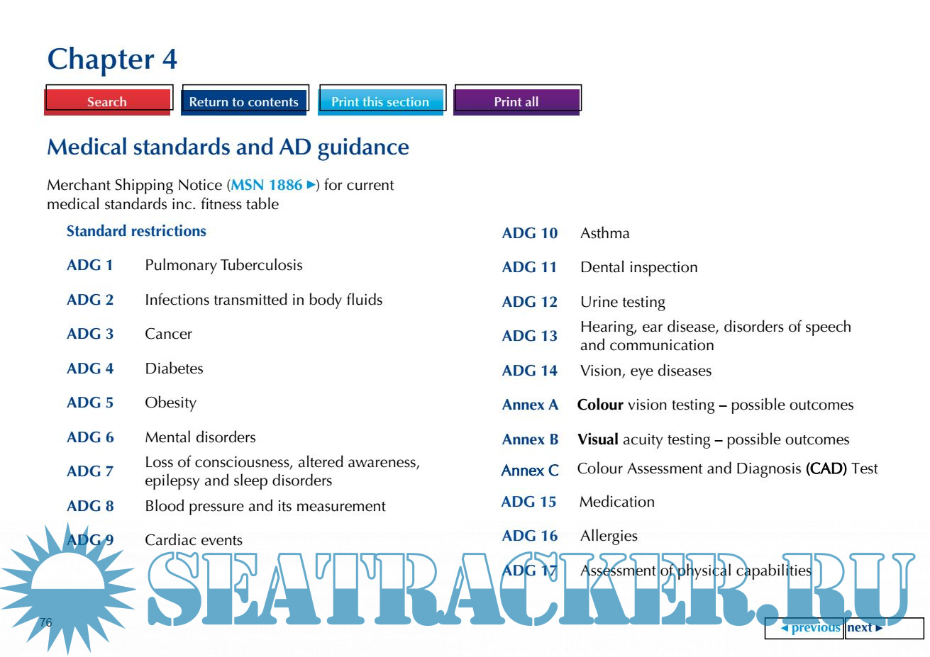 Description: This manual is for the ADs who carry out the ENG1 medical examinations on seafarers serving aboard UK flagged ships.