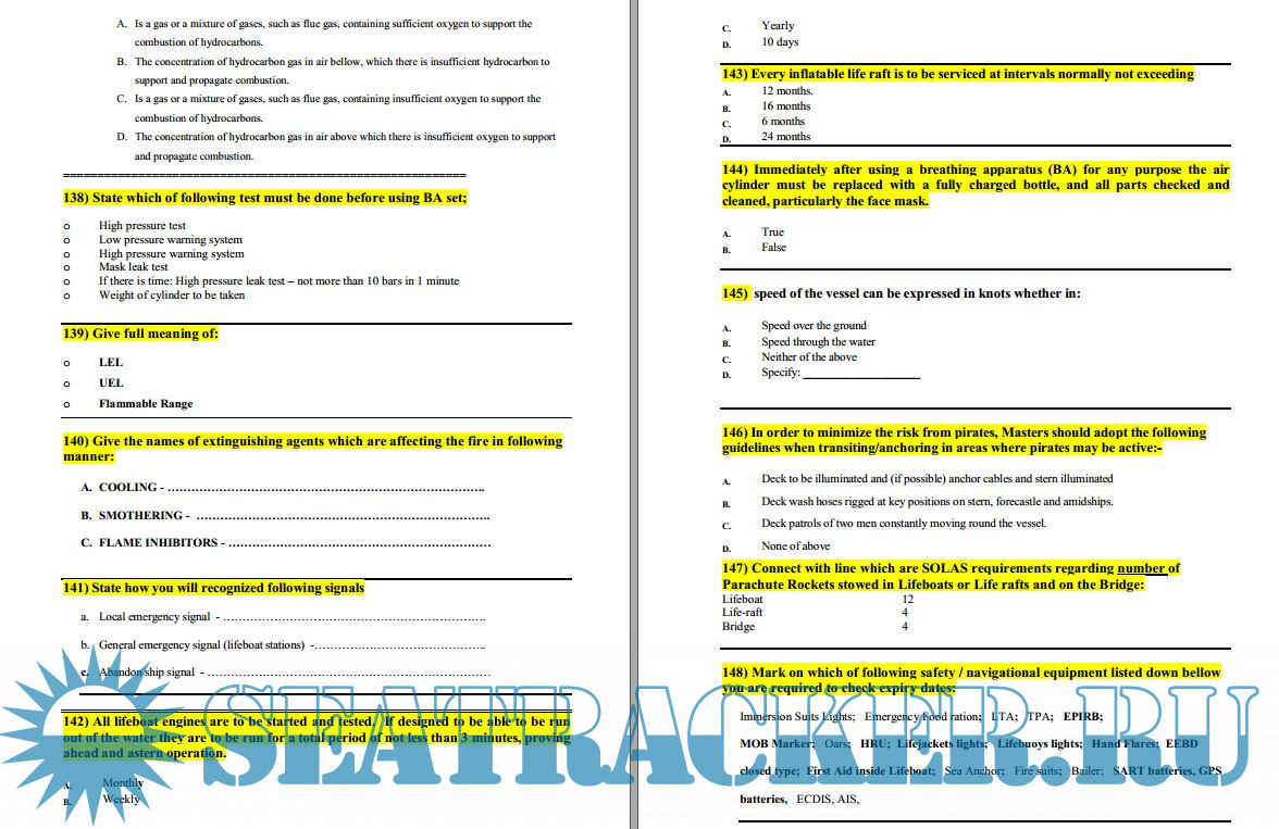 Cadet Interview Questions and Answers - BSMA, Capt. Alex Tsetskhladze [2022, DOC]