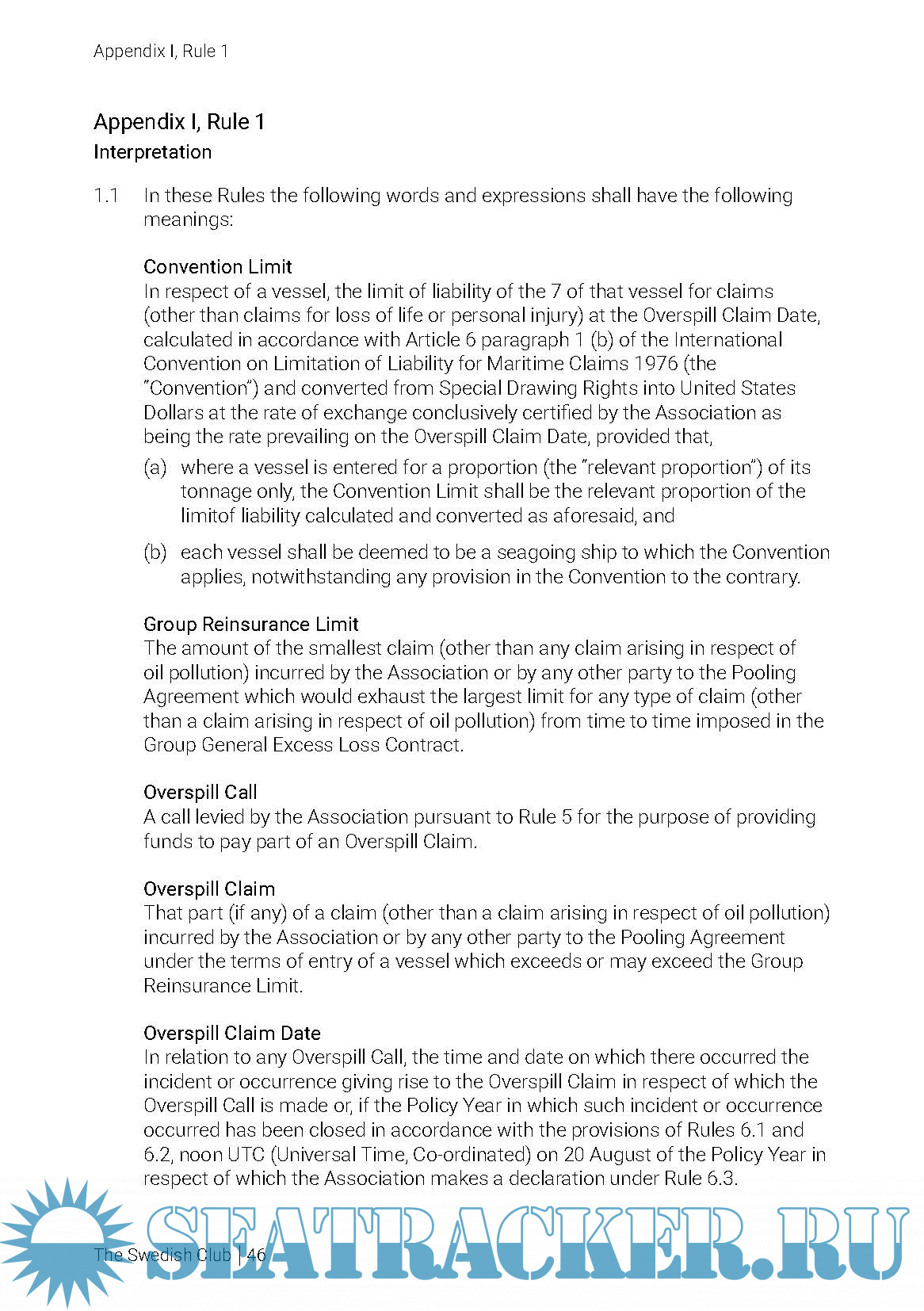 Year: 2018 Language: english Author: The Swedish Club Genre: Convention (rules) Format: PDF Quality: eBook Pages count: 90 Description: The Swedish Club Rules for Protection & Indemnity Insurance 2018/2019 Valid as from 20 February 1985 Amended as from 20 February 2018