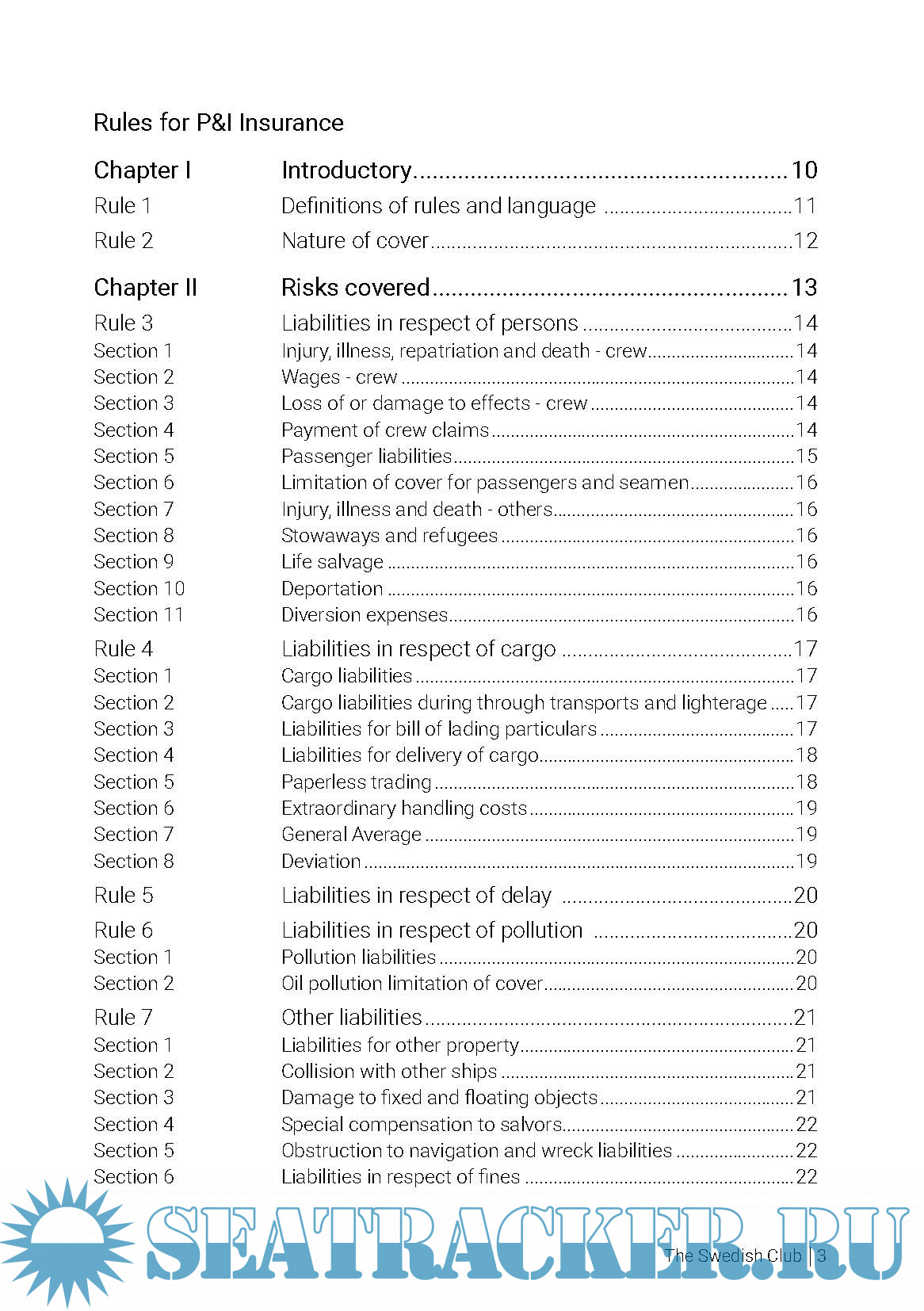 Description: The Swedish Club Rules for Protection & Indemnity Insurance 2018/2019