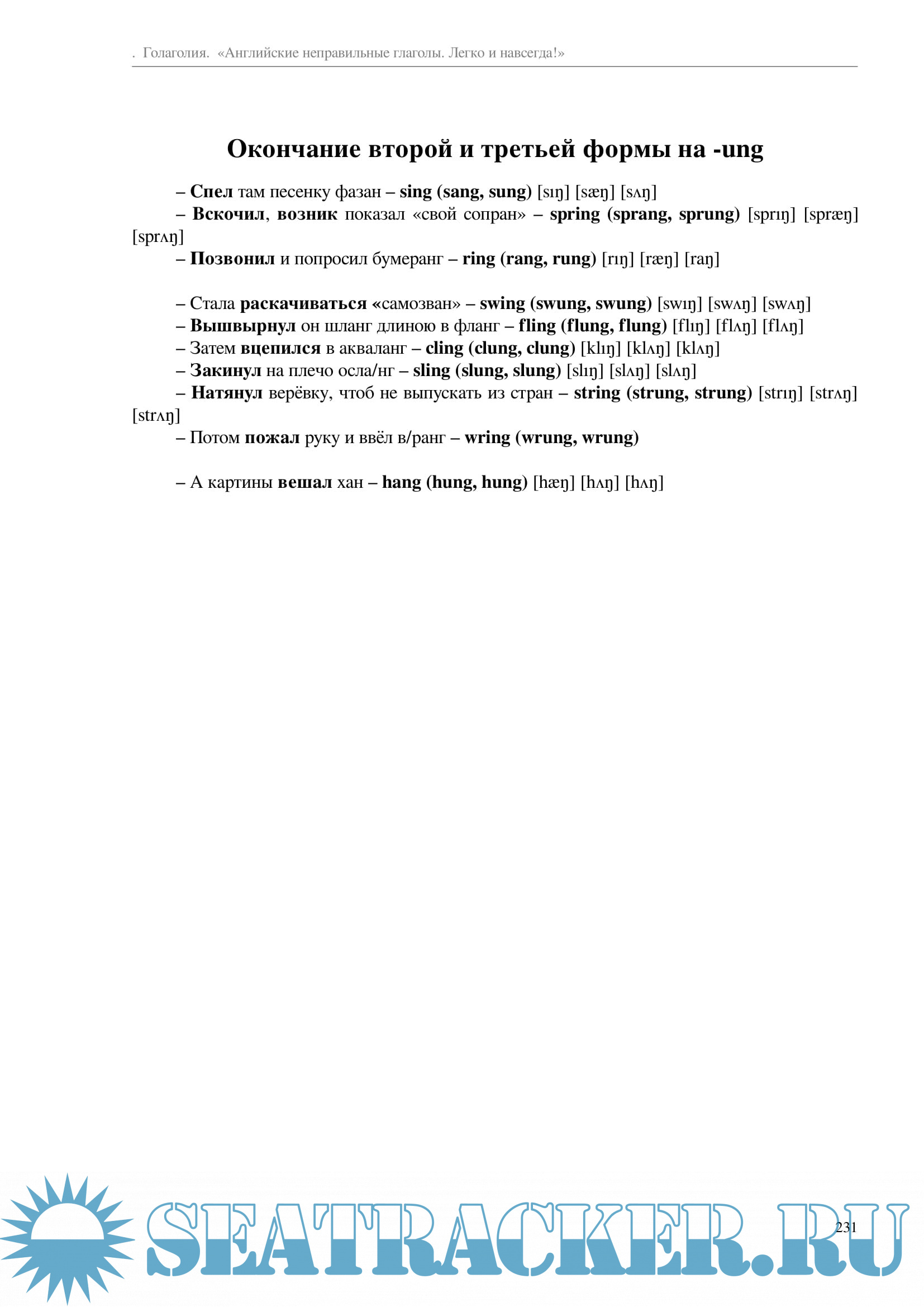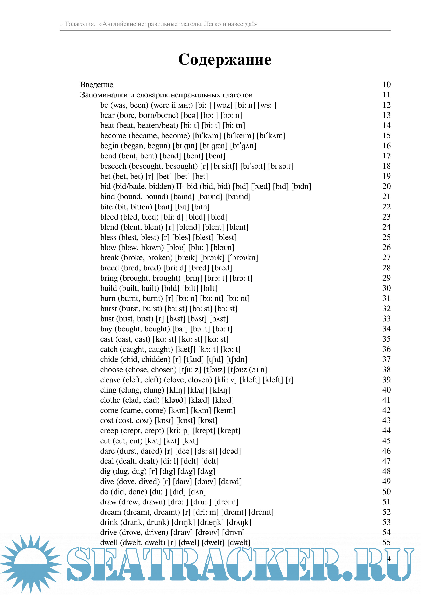 Введение 10 Запоминалки и словарик неправильных глаголов 11 Объединение в группы 201 Глаголы с разными формами прошедшего времени и причастия 209 Важные моменты 240