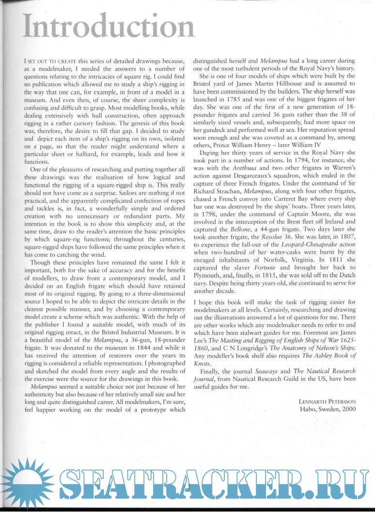 Year: 2000 Language: english Author: Lennarth Petersson Genre: Practical guide Publisher: Chatham Publishing ISBN: 1-55750-970-0 Format: PDF Quality: Scanned pages Pages count: 126 Description: The rigging of period ship models is arguably the most complex and daunting task for the modeler. An eighteenth-century man-of-war boasted mile upon mile of rigging, over 1,000 blocks, and acres of canvas. To reduce the rigging in scale and yet retain an accurate representation is a formidable undertaking. After studying numerous eighteenth-century museum models, the author has drawn some four hundred diagrams which clearly show how each separate item of rigging is fitted to the masts, yards, and sails. Each drawing deals with only one particular aspect and is accompanied by a logical and straight forward narrative. For example, the fore deadeyes and channels are shown before the shrouds are added, and these are depicted before the ratlines are added. Whether a model maker needs to rig a whole ship or just requires information on one aspect, it is all here in this beautifully produced volume that no modeler of period ships should be without.