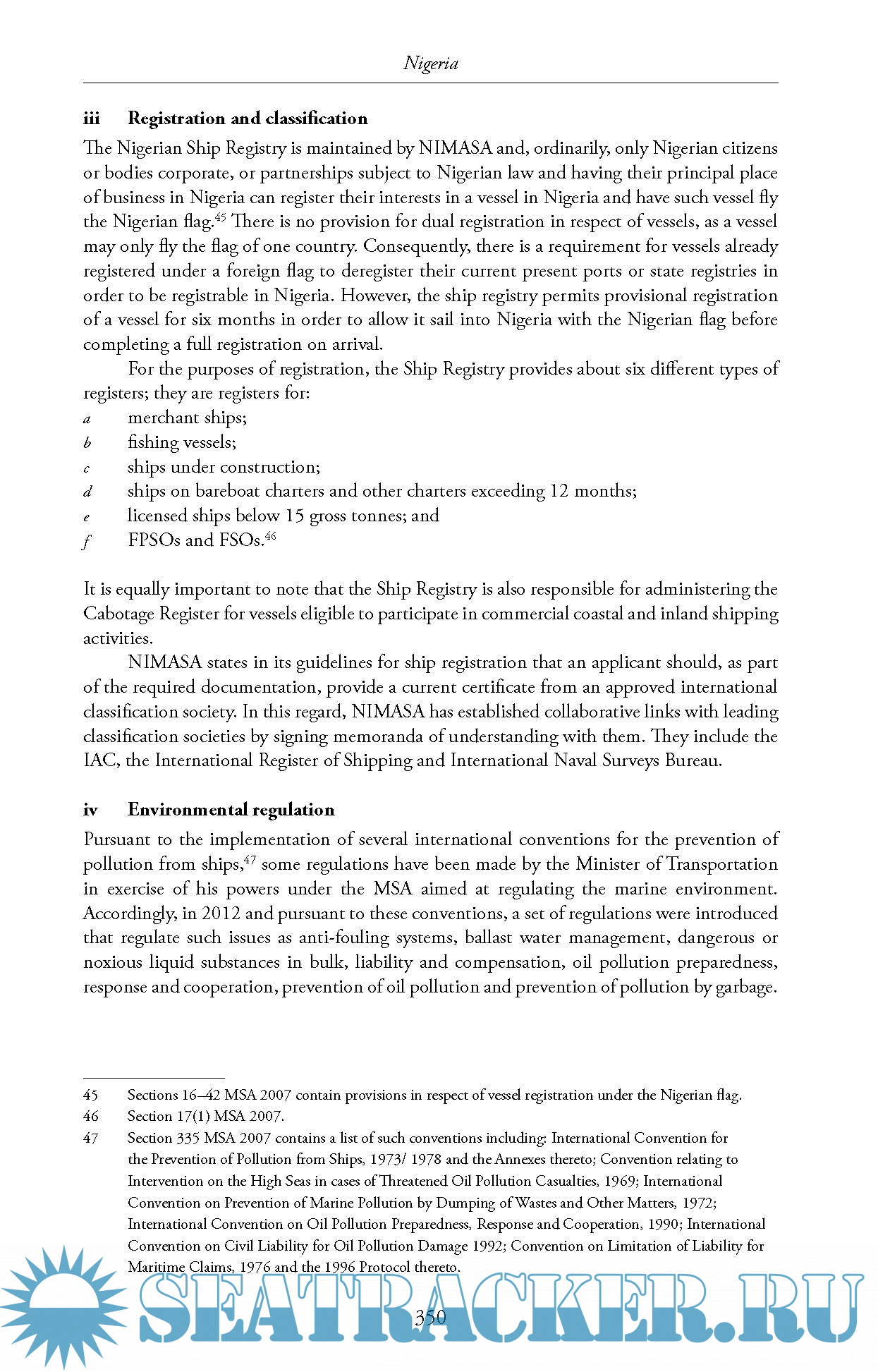 Description: The authors review the vessel safety regimes in force in each country, along with port