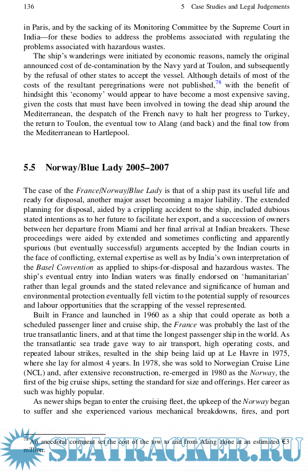 Description: Most of the world’s redundant ships are scrapped on the beaches of the Indian sub-continent, largely by hand. As well as cargo residues and wastes, ships contain high levels of hazardous materials that are released into the surrounding ecology when scrapped. The scrapping process is labour-intensive and largely manual; injuries and death are commonplace.