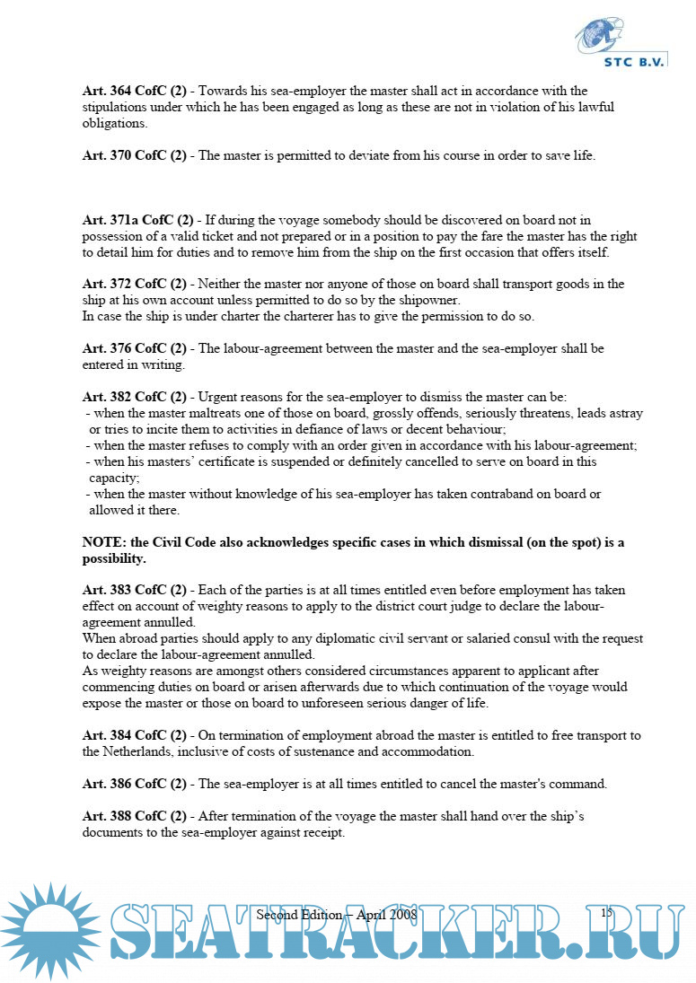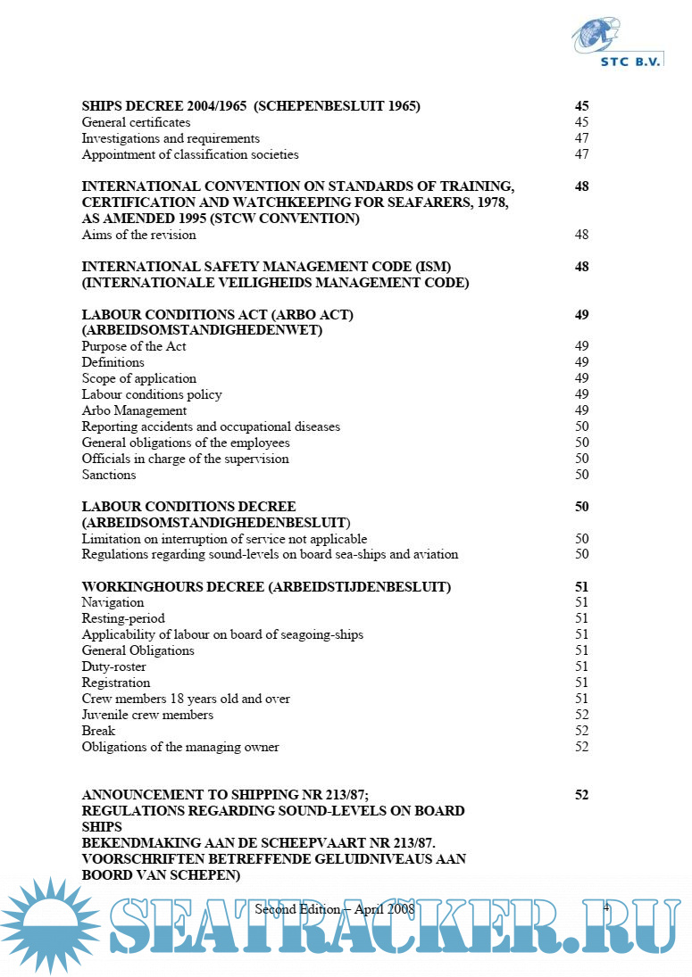 As it is an impossible task to deal with all this in detail, only outlines have been stated in this book. This will provide the Master, the Chief Officer and the Chief Engineer, which intend to work on board of any of Duch fleet vessel, with minimal requsted knowlege of Duch legislations.