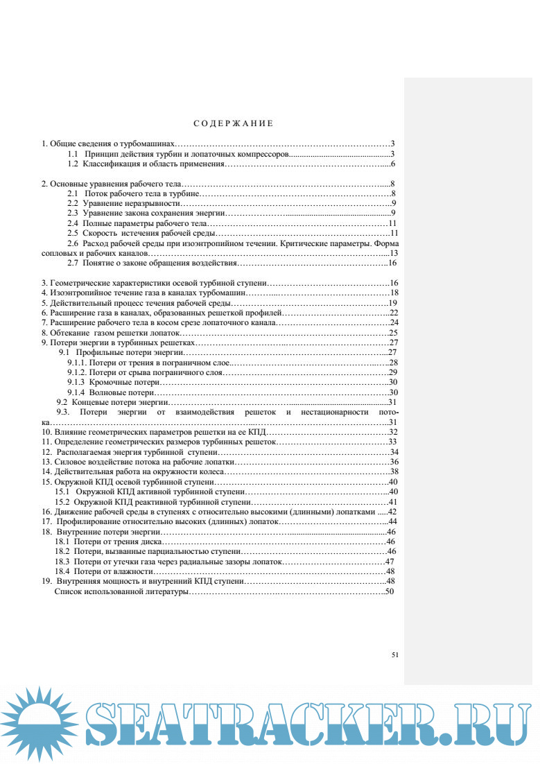 Описание: Данное пособие содержит общие сведения о турбомашинах: процесс течения рабочей среды, потери энергии в турбинных решетках, многоступенчатые турбины, работа турбин на долевых режимах, совместная работа турбин и потребителей, прочность элементов судовых турбомашин.