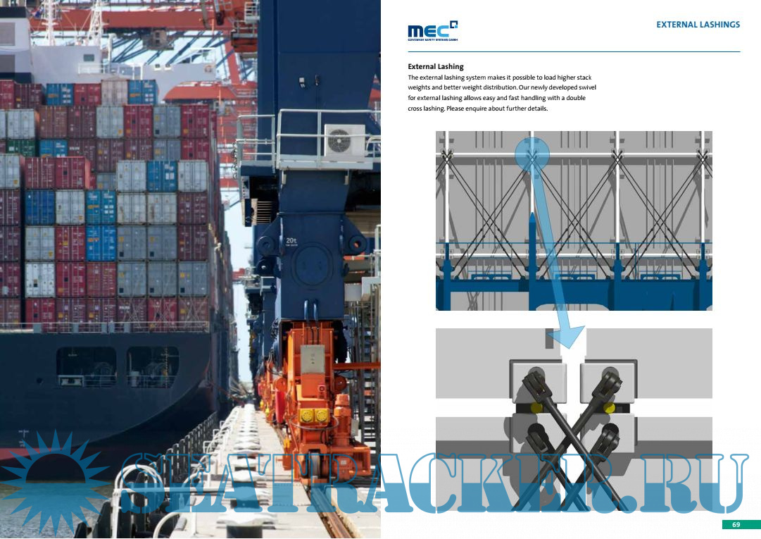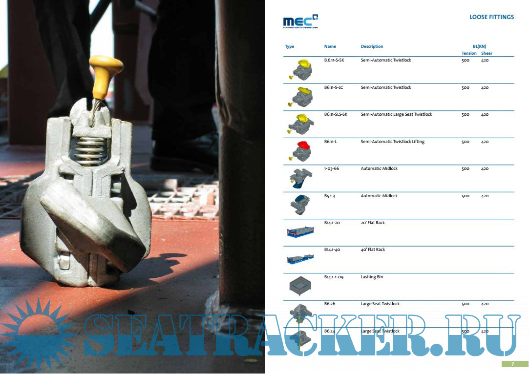 Year: 2015 Language: english Author: MEC Container Safety System GmbH Genre: Catalogue Publisher: MEC Format: PDF Quality: eBook Pages count: 78 Description: MEC CSS is a German-owned company with more than 25 years experience inlashing equipment. Their global network has helped them grow into a global company. Their range of services and deliveries comprises stowage systems in close cooperation with shipyards and shipowners, taking into consideration the practical requirements of the vessel. Their main mission is to simplify cargo operation. The development and production of fixed and loose fittings for container ships, PCTC’s and RoRo carriers are approved by all major classification societies such as DNV GL, LRoS and ABS. All design projects such as cell guide systems, lashing bridges, container stanchions and working platforms are carried out by experienced shipbuilding engineers in head office in Hamburg. In order to render best service on shortest notice to customers, Company maintain agencies/representations in big ports worldwide. Their locations such as Hamburg, Shanghai, Singapore and Houston have well-equipped stocks to handle customers‘ needs.