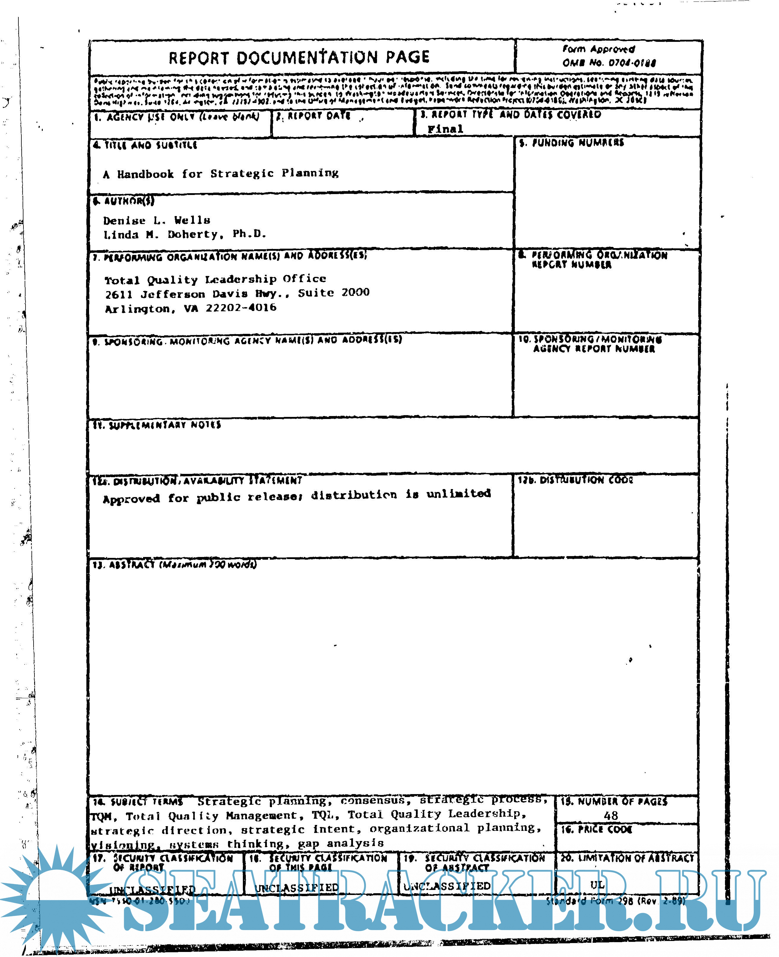 Description: This handbook was written for Department of the Navy (DON) commanding officers, TQL