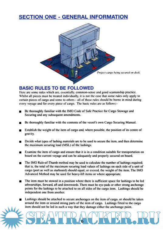 Description: This guide will take the reader through some basic rules to be remembered on every occasion during the loading and securing of cargo, will describe where regulations, recommendations and general guidance can be found, will describe recommended methods to be used for particular items and types of cargo, and will then give some guidance upon the points to be remembered during passage-planning and the voyage itself. It is not intended that this guide will give details of precisely how to secure any particular items of cargo. It will set out the basics and point to publications which give the rules to be followed. This guide contains information, such as for the calculation of lashings, taken from Codes, but only that which is essential for the clear understanding of the text.
