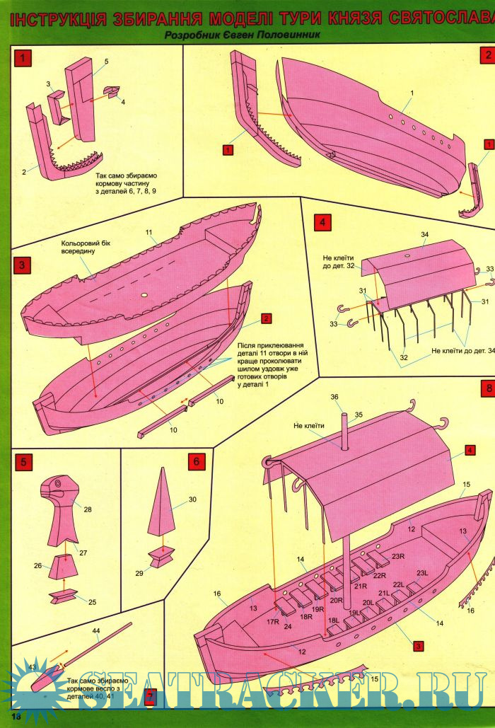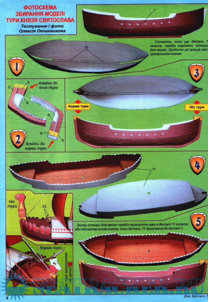 В журнале даны краткая история, и описание сборки картонной модели Туры князя Святослава.