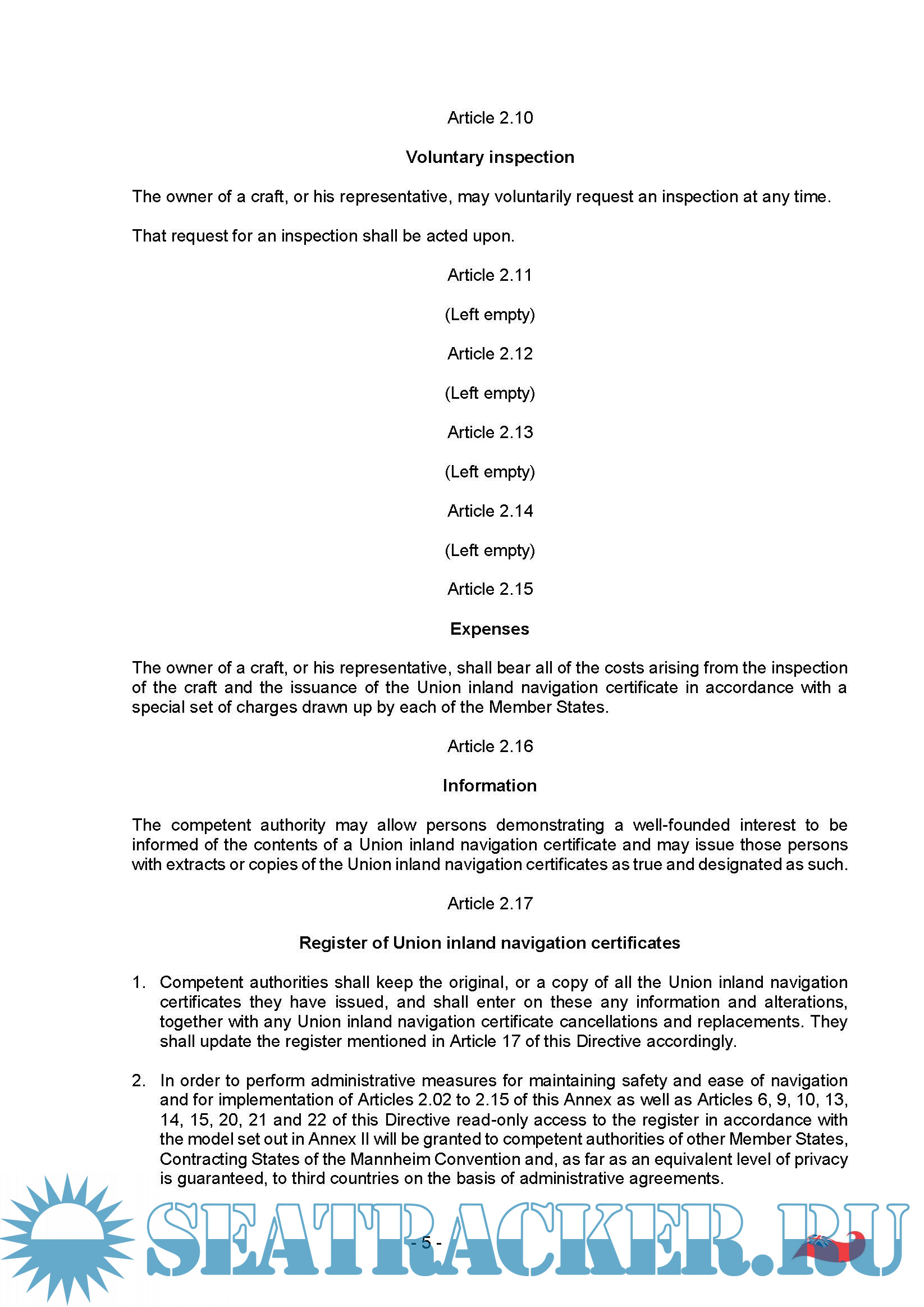 Inspection bodies, Page 3 Presentation of the craft for inspection, Page 3 Periodical inspection, Page 4 Voluntary inspection, Page 5 Information, Page 5 Register of Union inland navigation certificates, Page 5 Unique European vessel identification number, Page 6 Notifications, Page 6