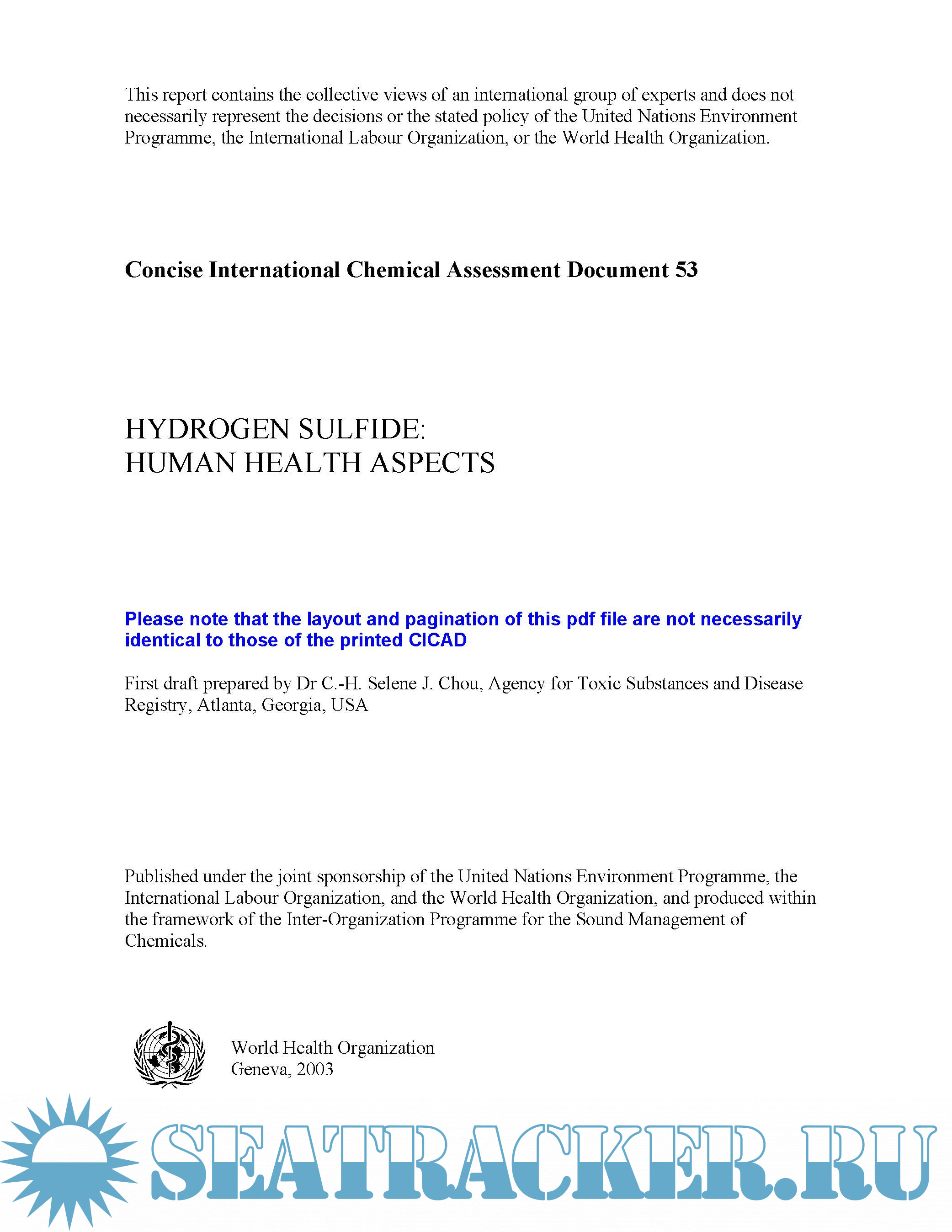 1) Hydrogen Sulfide: Human Health Aspects, WHO 41 Pages, (Concise international chemical assessment document ; 53) ISBN 92 4 153053 72) Hydrogen Sulfide Monitoring and Safety, Nova Safety & Environmental, 49 Pages (Presentation)