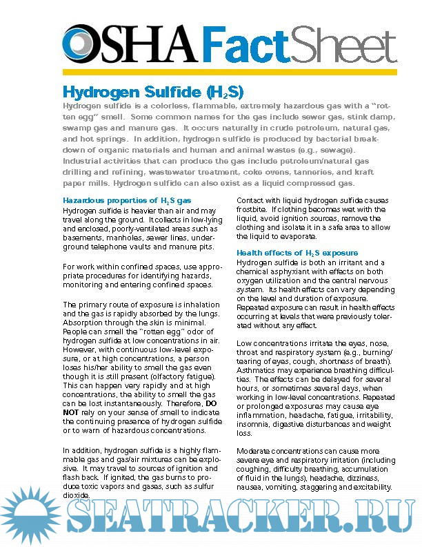 3) Hydrogen Sulfide, OSHA, 2 Pages, Fact Sheet