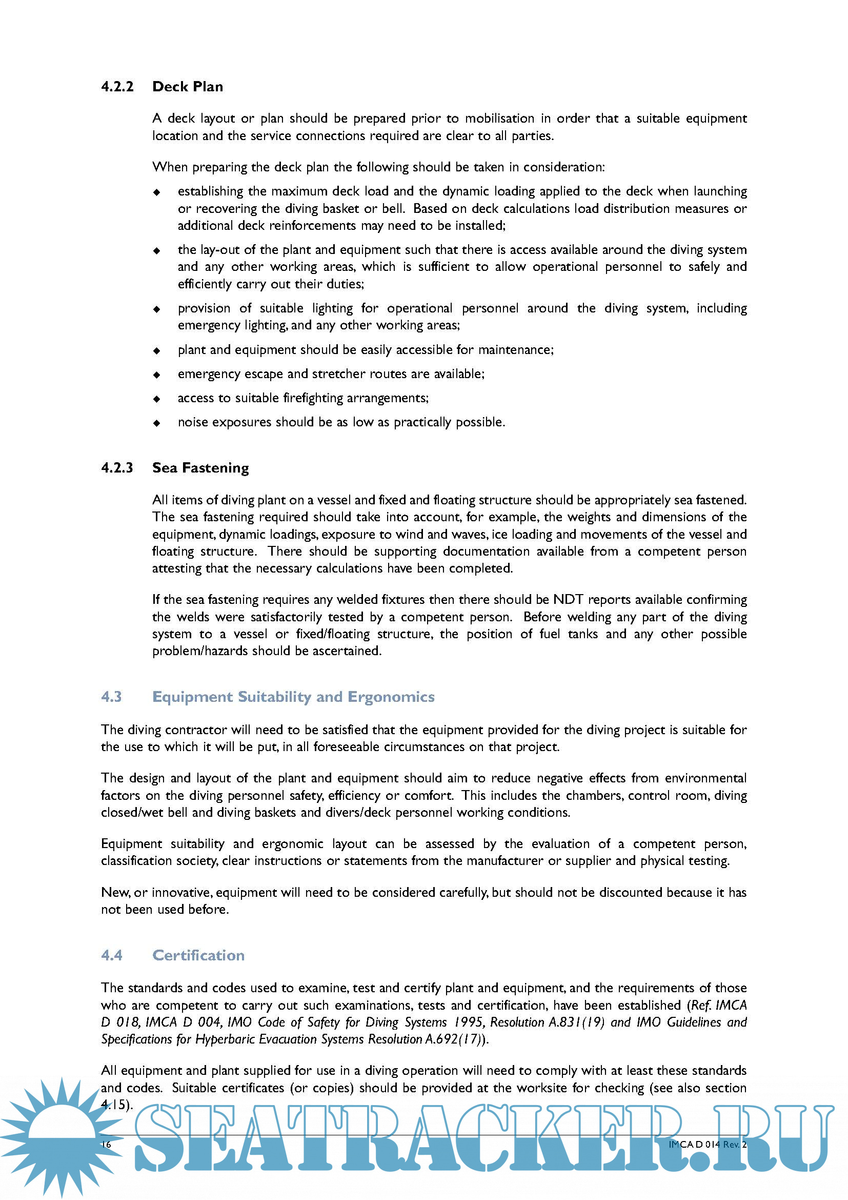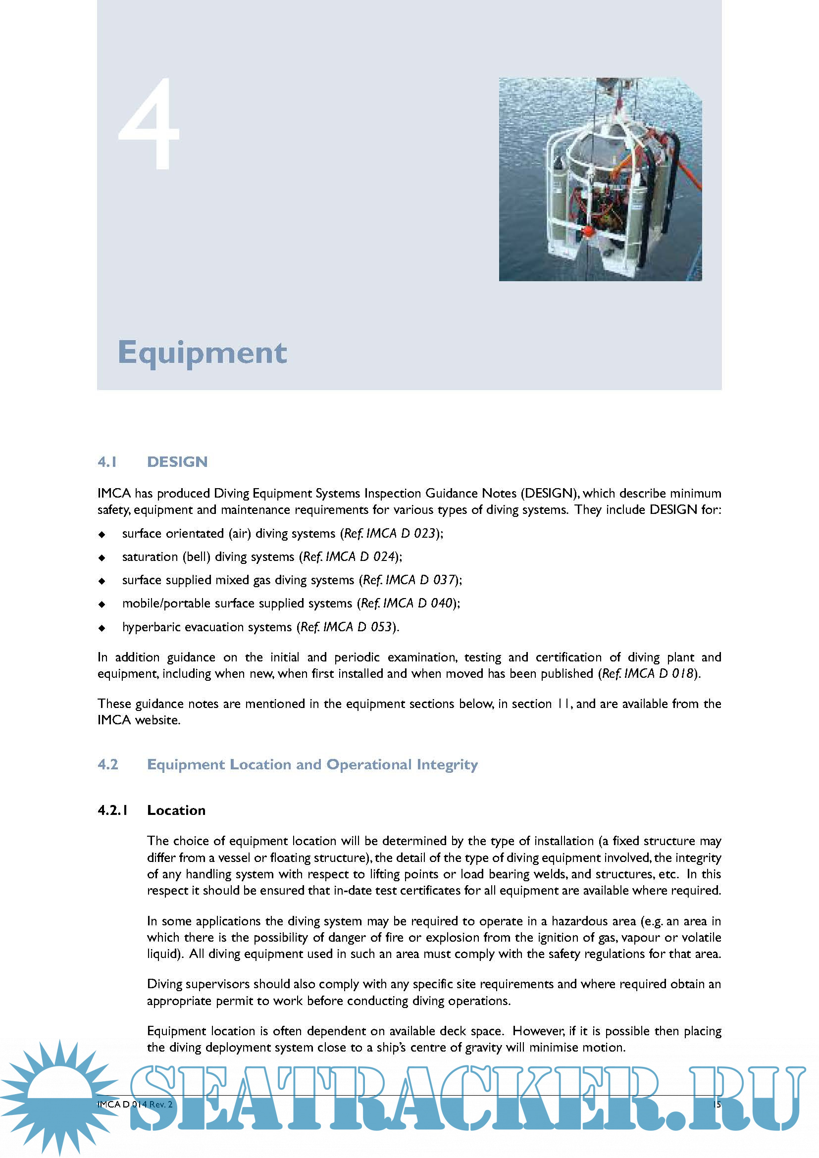Description: The IMCA International Code of Practice for Offshore Diving offers examples of good practice, gives advice on ways in which diving operations can be carried out safely and efficiently and includes personnel, equipment and systems guidelines for the following diving operations: