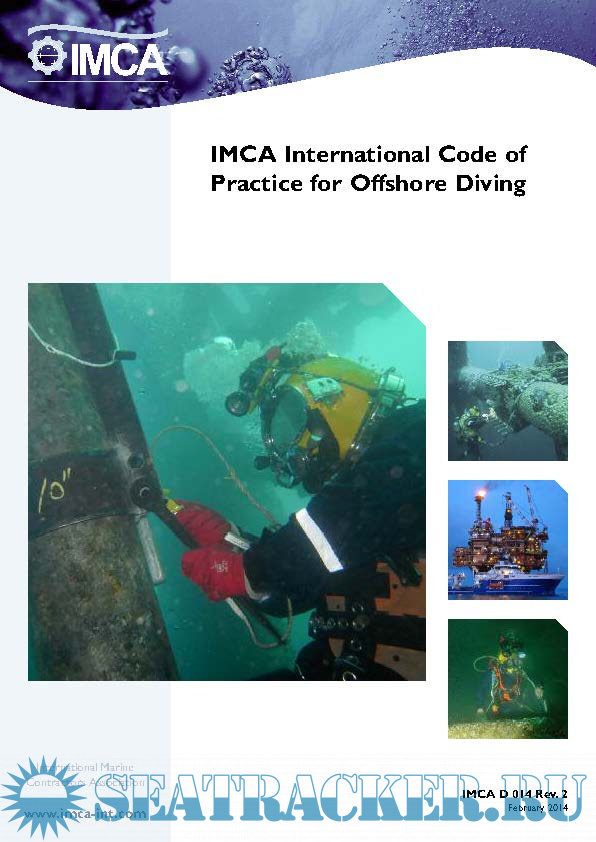 Year: 2014 Language: english Author: IMCA Genre: Documentation Publisher: IMCA Format: PDF Quality: eBook Pages count: 86 Description: The IMCA International Code of Practice for Offshore Diving offers examples of good practice, gives advice on ways in which diving operations can be carried out safely and efficiently and includes personnel, equipment and systems guidelines for the following diving operations: - surface supplied diving using: air, nitrox and mixed gas; - closed bell diving; - saturation diving.