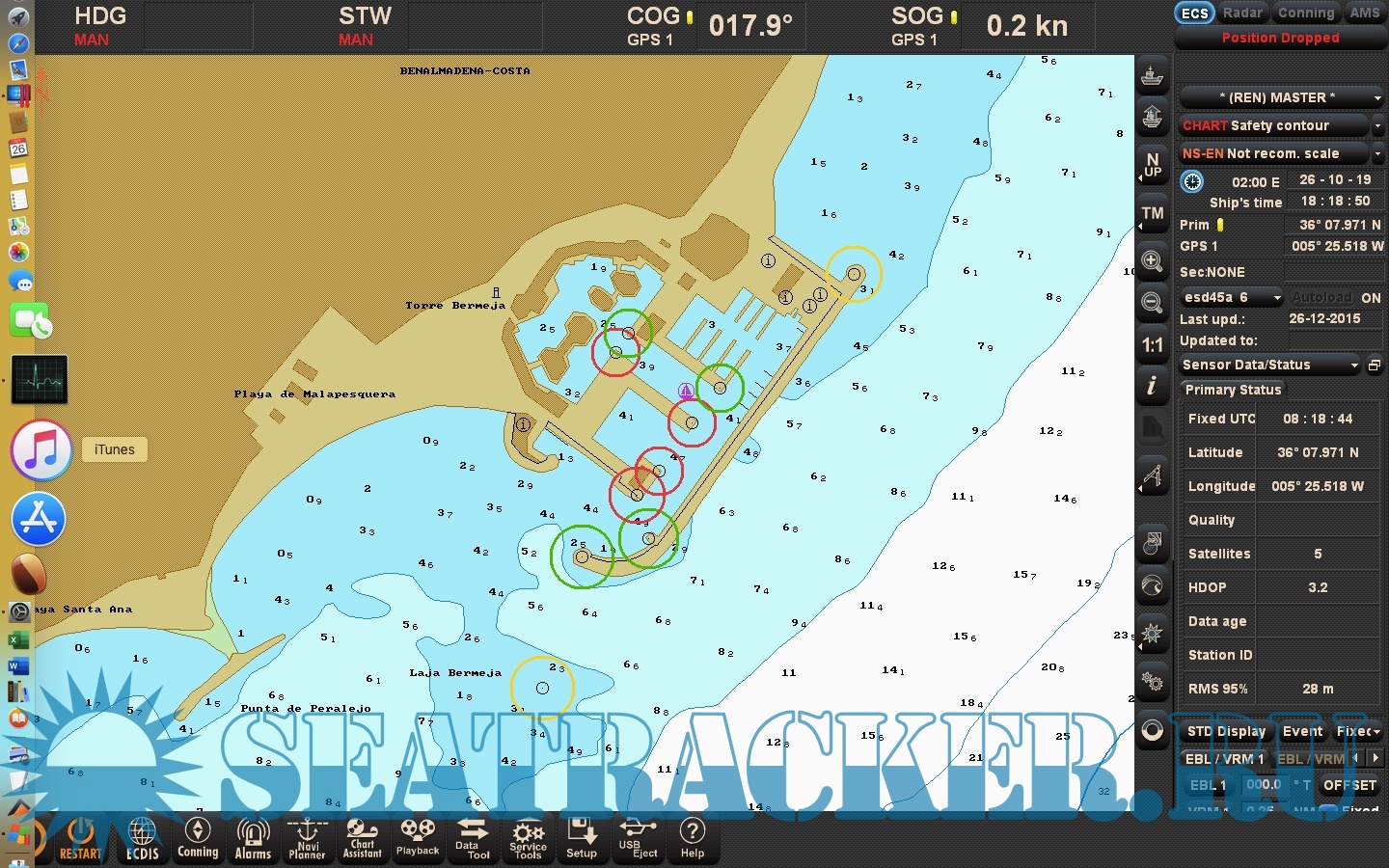 • Monitoring of approach to the dangers to navigation plotted on electronic vector charts or on map created