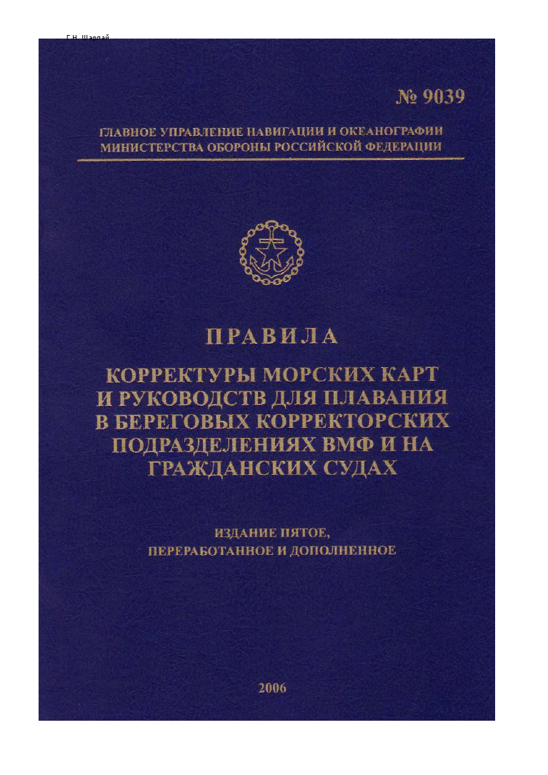 Правила Корректуры морских карт и руководств. Адм. №9039