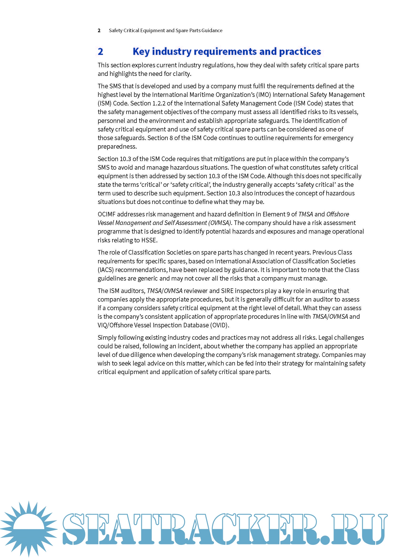 Description: The purpose of this information paper is to provide guidance on safety critical spare parts for companies to consider when preparing a Safety Management System (SMS). It is equally applicable to companies managing any type of vessel.