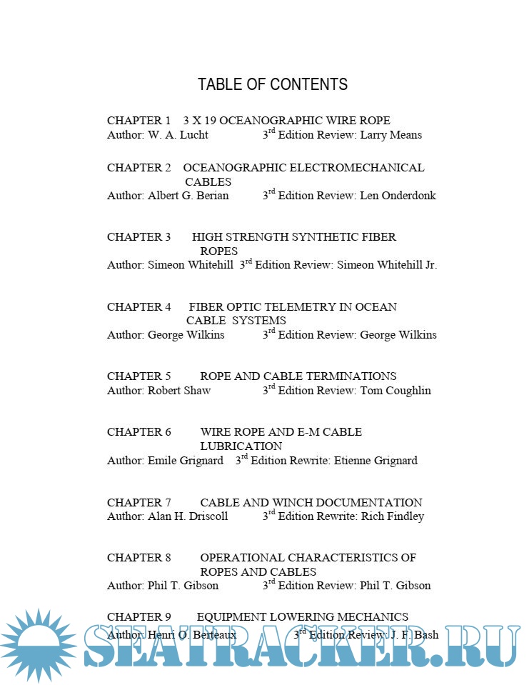 Year: 2001 Language: english Author: J.Bash Edition: Third Format: PDF Quality: Scanned pages + text layer Pages count: 566 Description: This third edition to the Handbook of Oceanographic Winch, Wireand Cable Technology has been prepared to provide a reference andguide for the operation, handling and care of winches, wires, cablesand oceanographic rope for the operators and scientists of theoceanographic community. This handbook contains information suitable to initiate a carefulreview of existing winch systems as well as being useful for thespecification of upgrades or new systems. It is the hope of the authors that this handbook will serve as a ready reference for boththe oceanographic and commercial communities, now and in the future.