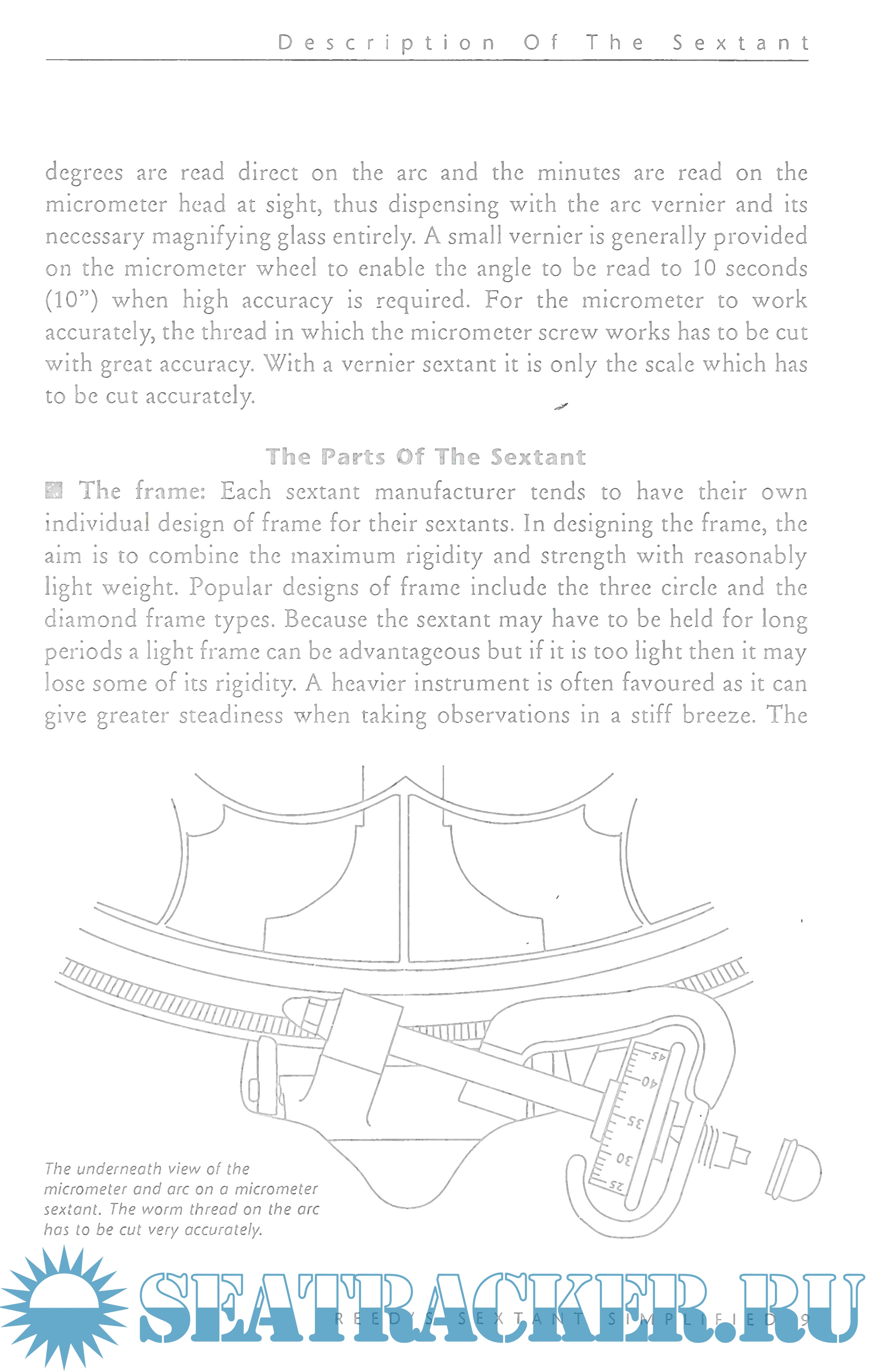 Year: 2016 Language: english Author: Pike D. Genre: Reference book Publisher: SHERIDAN HOUSE Format: PDF Quality: Scanned pages Pages count: 116 Description: The sextant is the purest of navigation instruments. It allows a position line to be determined without reference to any other instruments or systems. With horizontal angles the position can be fixed from marks without any corrections being necessary. Vital ranges can be determined by using vertical angles. Latitude can be found from angles of the sun on the meridian or from the Pole Star. Bring in the chronometer and the position can be determined with adequate accuracy for ocean navigation. No wonder that the sextant has been the treasured navigation device of generations of seamen and airmen. Its early attraction was the fact that position could be determined with good accuracy for ocean navigation, and it was largely the combination of the sextant and the chronometer which opened up the era of safe and reliable ocean navigation across the Atlantic and Pacific Oceans. Position could be determined without reference to any external systems, although the requirement for clear skies and a co-operative horizon could limit the availability of positions. It is the independent nature of the sextant/chronometer combination which still makes it attractive in the electronic era. All electronic systems are dependent on external radio transmissions of one sort or another to allow position to be determined. These modern electronic systems can produce accurate positions virtually at the touch of a button, but seamen in particular are concerned not only with accuracy but also with reliability. The time may come when the reliability of the electronic system is such that the sextant becomes redundant. That time is not now, and the sextant is still treasured by a multitude of seamen because of the independence it offers to the navigator. For many navigators the sextant may have been relegated to the role of a back-up system but that is no excuse for not understanding the way the sextant works and how to get the best out of it. The sextant still has a treasured place in the navigation equipment of many ocean-ranging yachtsmen. It is the traditional way of fixing position, and to the navigator who gets his power from the wind, tradition can be important. For professional and amateur navigator alike, the sextant is still the purest of navigation instruments, and here we explain its design and workings, its accuracy and its care, in the hope that the reverence accorded to the sextant in the past will live long in to the future