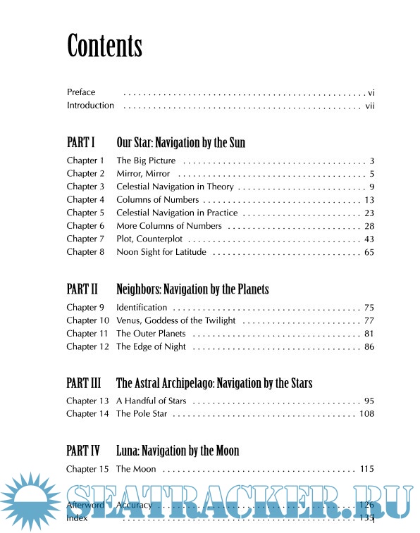 Preface Introduction PART I Our Star: Navigation by the Sun Chapter 1 The Big Picture ..................................... 3 Chapter 2 Mirror, Mirror ...................................... 5 Chapter 3 Celestial Navigation in Theory .......................... 9 Chapter 4 Columns of Numbers ................................ 13 Chapter 5 Celestial Navigation in Practice ........................ 23 Chapter 6 More Columns of Numbers ........................... 28 Chapter 7 Plot, Counterplot ................................... 43 Chapter 8 Noon Sight for Latitude . . . . . . . . . . . . . . . . . . . . . . . . . . . . . . 65 Part II: Neighbors: Navigation by the Planets Chapter 9 Identification ...................................... 75 Chapter 10 Venus, Goddess of the Twilight ........................ 77 Chapter 11 The Outer Planets . . . . . . . . . . . . . . . . . . . . . . . . . . . . . . . . . . 81 Chapter 12 The Edge of Night .................................. 86 PART III The Astral Archipelago: Navigation by the Stars Chapter 13 A Handful of Stars .................................. 95 Chapter 14 The Pole Star . . . . . . . . . . . . . . . . . . . . . . . . . . . . . . . . . . . . . 1 08 PART IV Luna: Navigation by the Moon Chapter 15 The Moon . . . . . . . . . . . . . . . . . . . . . . . . . . . . . . . . . . . . . . . 11 5 Afterword Accuracy ........................................ 126 Index ............................................... 135