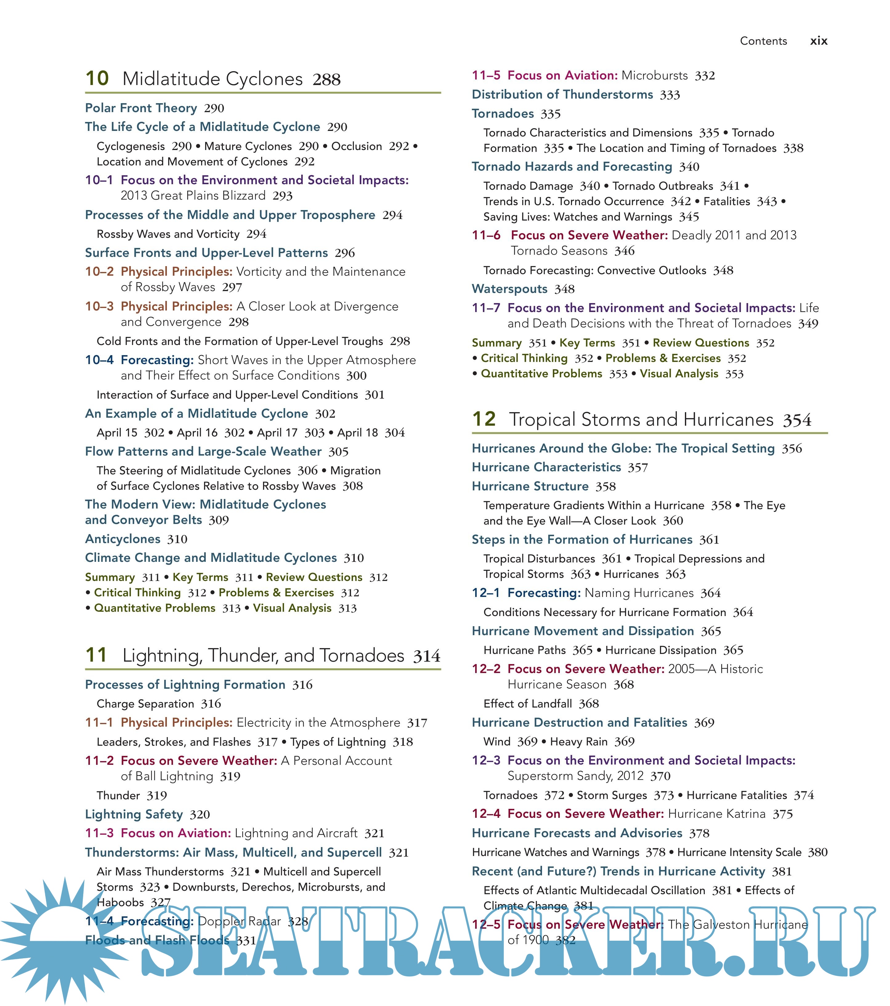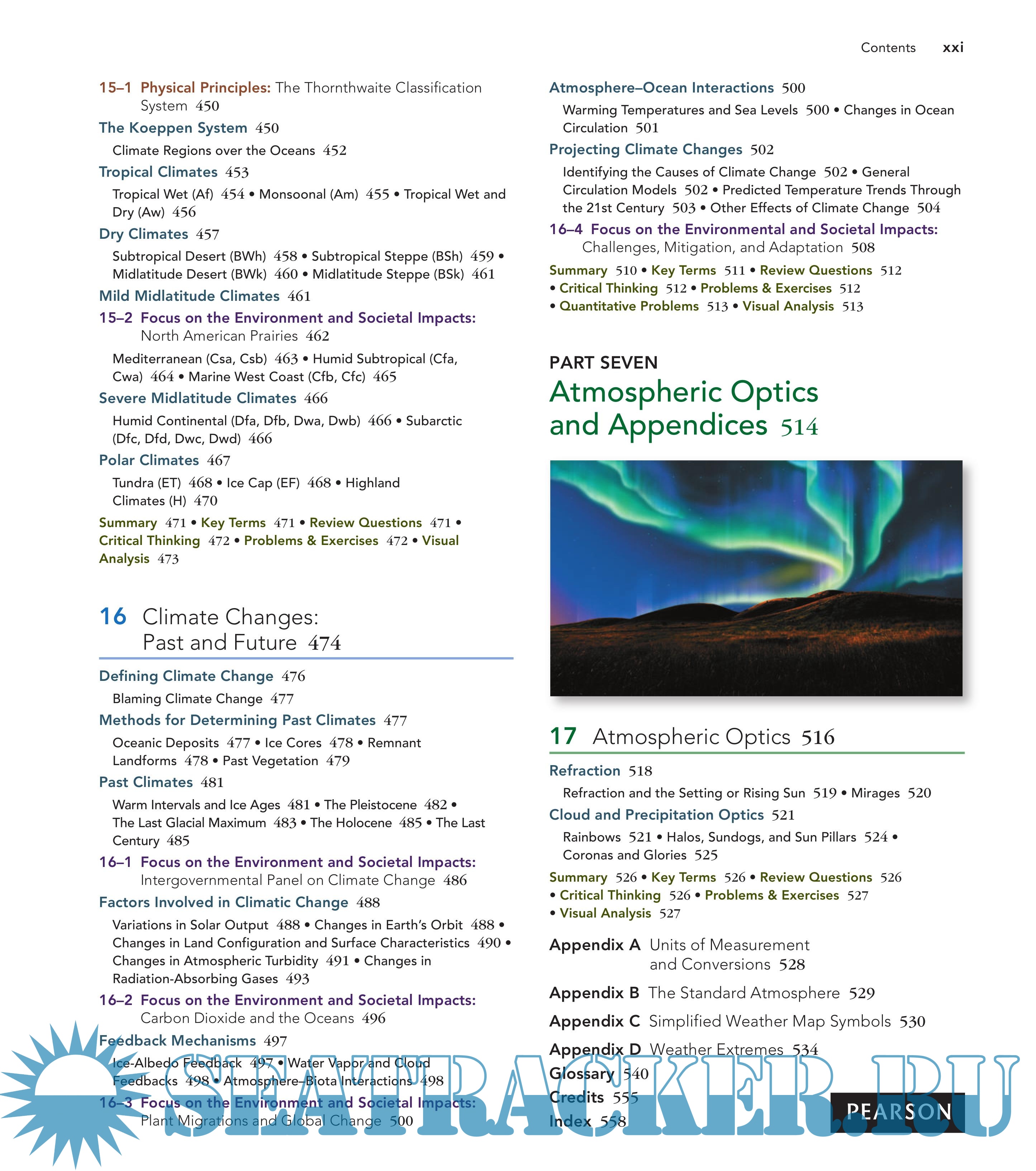 Description: Aguado/Burt’s Understanding Weather and Climate illustrates meteorology and climatology using everyday occurrences and inspired technology tutorials to engage students in learning about atmospheric processes and patterns. The Seventh Edition extends coverage of global climate change with new and unique sections covering oceans and climate in the Earth system. Each chapter also focuses on the human aspect of weather and climate, covering high interest weather-related hazards that draw students into the course, while incorporating the latest science and the most relevant issues.