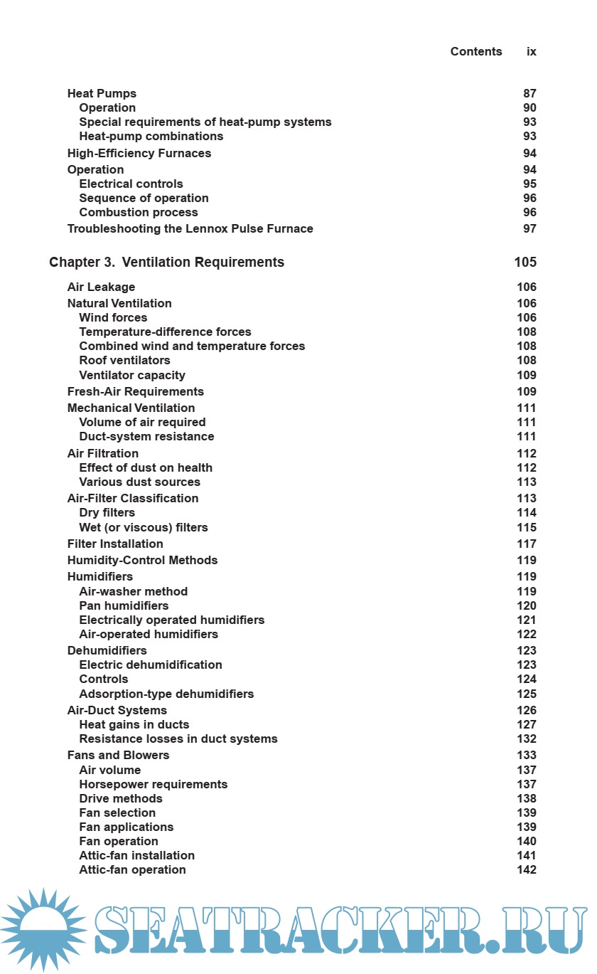 Many tables, charts, and illustrations are included. They show a variety of parts and techniques often found in present-day practice in the field. Obviously, not all related problems can be presented here, since there is a great deal of ingenuity required by the worker on the job. For standard procedures, however, the ASHRAE Handbook gives the numbers and sizes of various types of equipment that is safe to install in a given location.