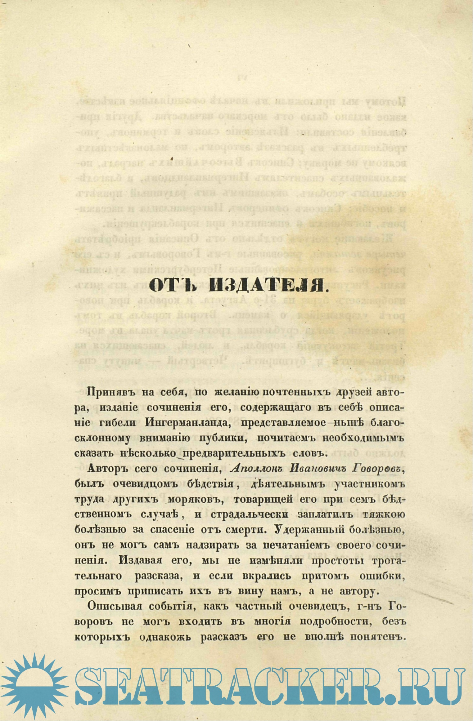 Книга повествует о событиях от лица очевидца - Аполлона Ивановича Говорова