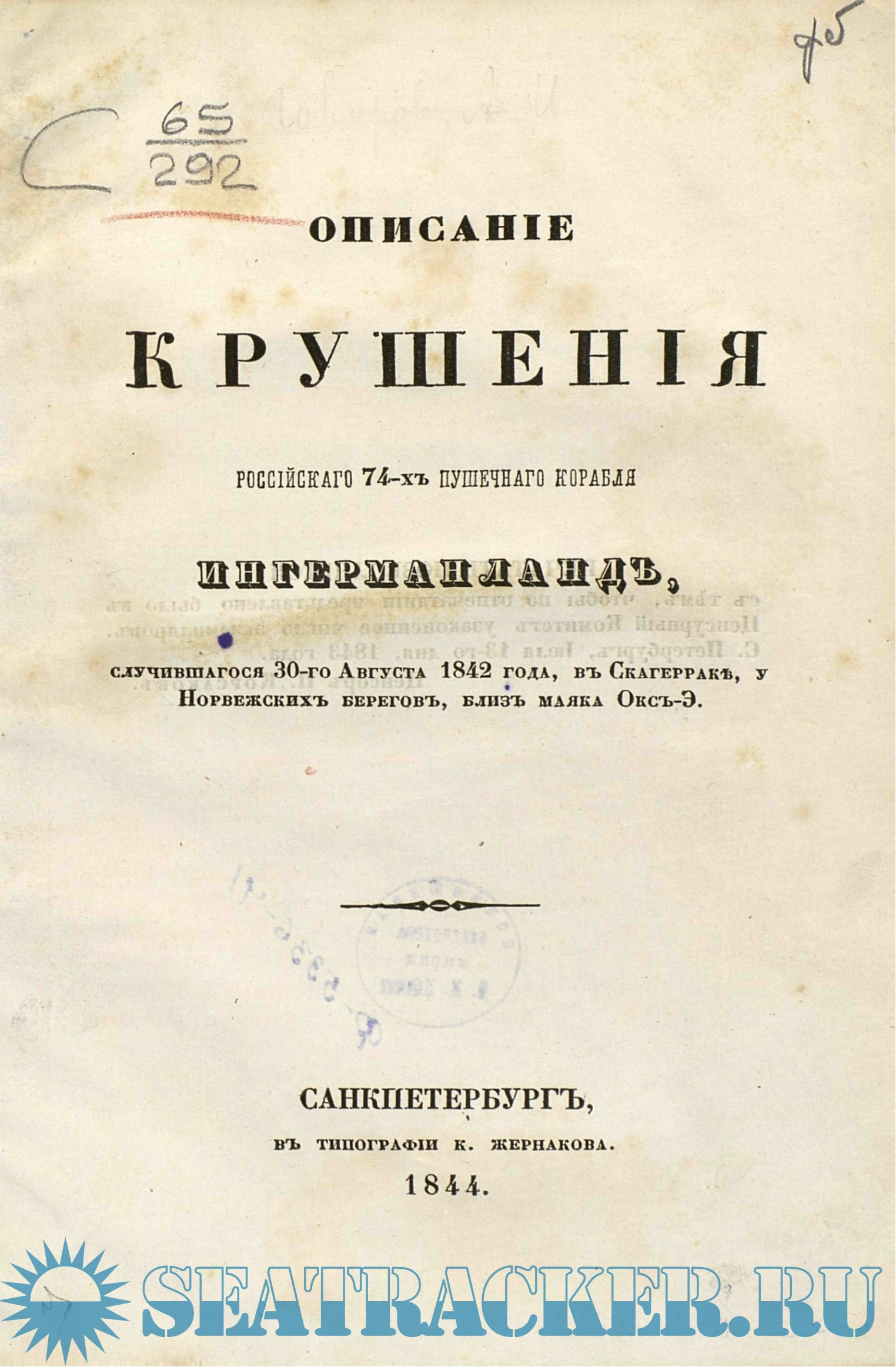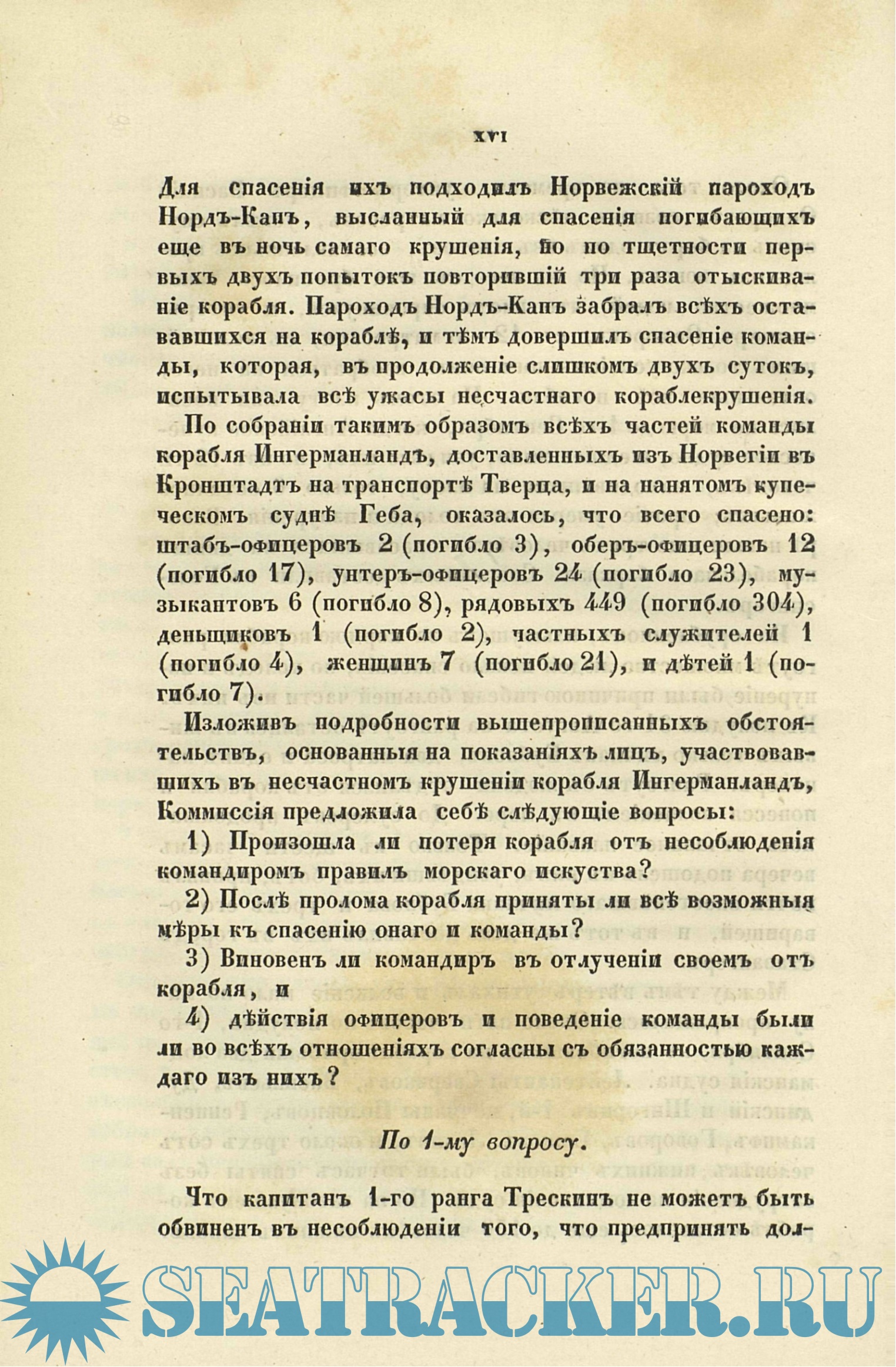 Описание крушения корабля "Ингерманланда" в 1842 году