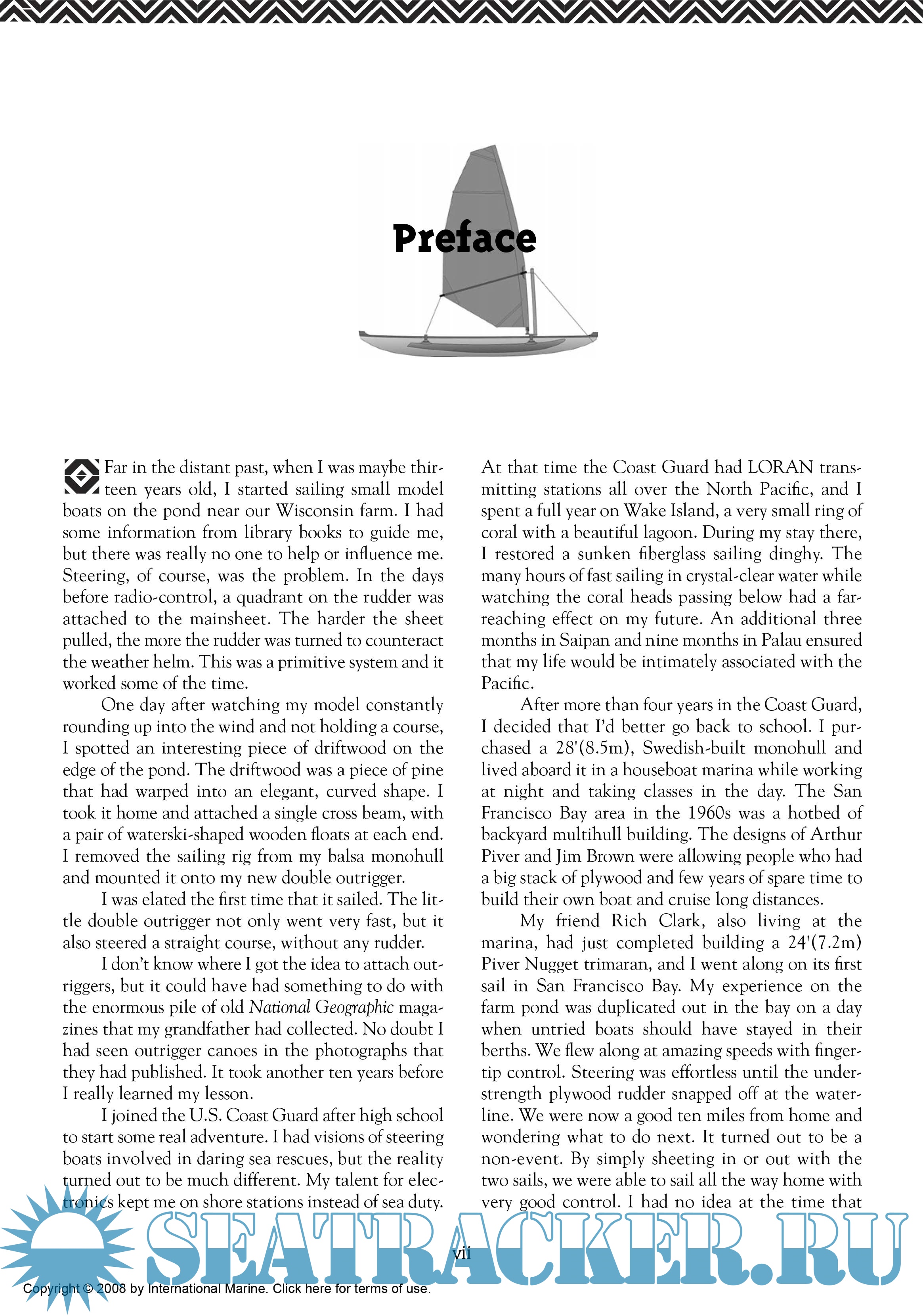 Year: 2007 Language: english Author: Gary Dierking Genre: Guide Publisher: McGraw-Hill ISBN: 0-07-159456-6 Format: PDF Quality: eBook Pages count: 185 Description: Build the fastest, most exotic sailboats around! Popular in Hawaii and throughout the South Pacific and Indian Oceans, outrigger canoes combine the romance of the South Seas with a ruthless efficiency of design and breathtaking sailing performance. This is the first book to present complete plans and building instructions for three outrigger sailing canoes. Based on traditional Hawaiian and Micronesian types, the designs are lightweight, easy to build, and screamingly fast. Author Gary Dierking shows you how to build these boats using stitch-and-glue and strip-planking construction, explains what tools and materials are required, how to rig and equip the boats, and more. PS See my other releases: https://seatracker.club/tracker...id=54420#results