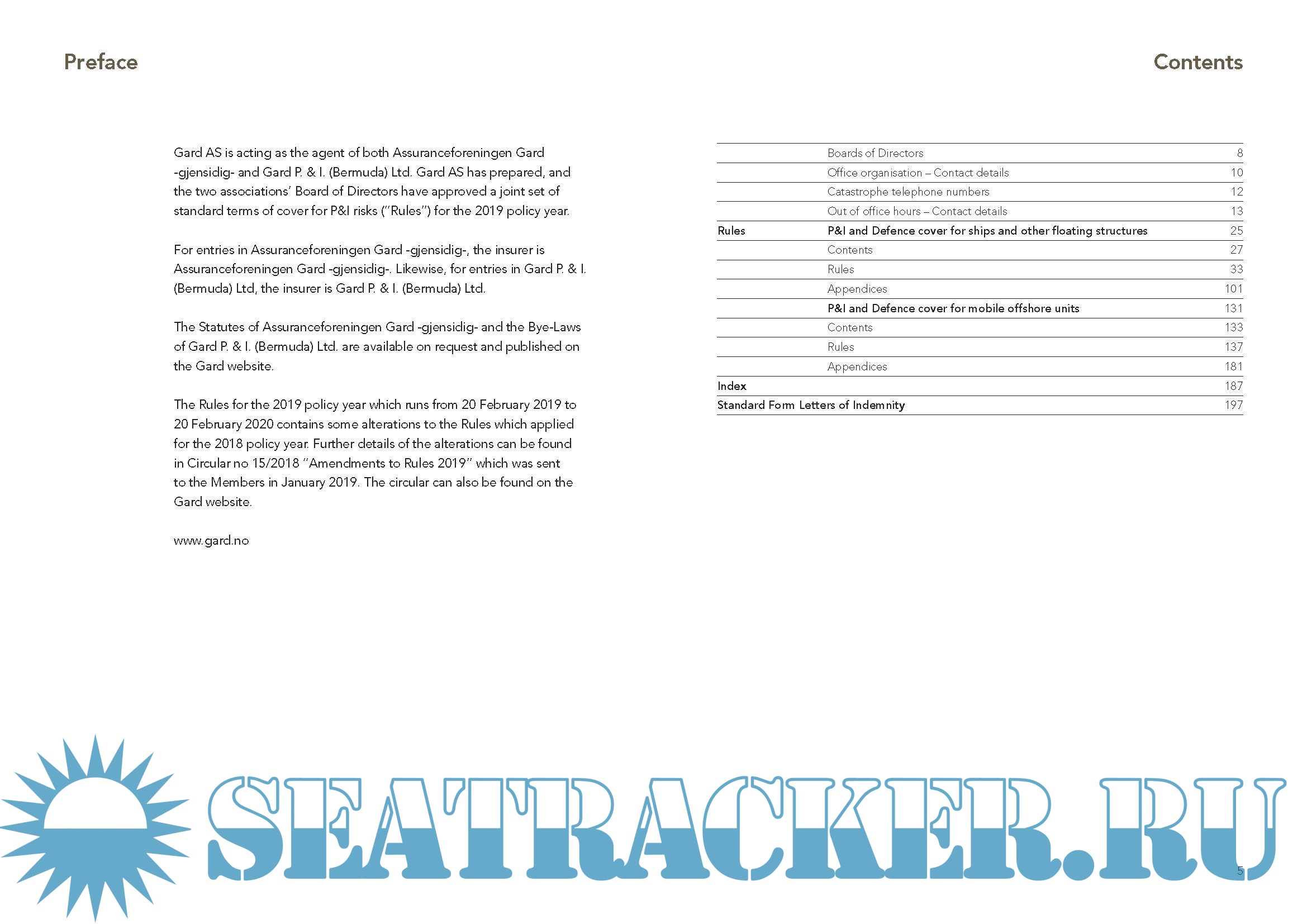 Year: 2019 Language: english Author: GARD P & I Genre: Convention (rules) Format: PDF Quality: eBook Pages count: 113 Description: The Rules for the 2019 policy year which runs from 20 February 2019 to 20 February 2020 contains some alterations to the Rules which applied for the 2018 policy year. Further details of the alterations can be found in Circular no 15/2018 “Amendments to Rules 2019” which was sent to the Members in January 2019.