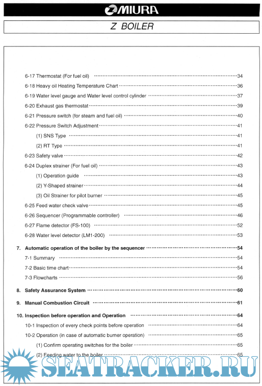 Year: 2006 Language: english Author: MIURA CO.LTD Genre: Manual Format: PDF Quality: Scanned pages Pages count: 607 Description: This manual gives you instructions on how to use the Z-Boiler. In using the boiler, make sure you choose a person in charge of handling the boiler (Engineer) and use the boiler after perusing the manual and understanding the contents. In addition, we recommend that you always have this manual at hand when you work. The main contents of this manual are: Outline of HB-type Z-Boiler, main functions, descriptions of the control system, operating procedure and maintenance. Precautions relating to operating method and safety indicated in this manual from damages to measures only relate to usage for specified purposes.