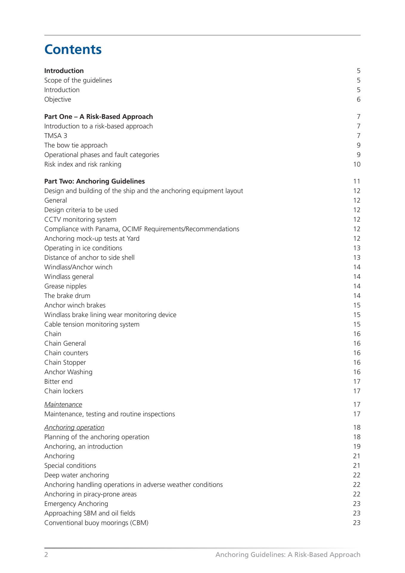 recommendations and guidance relating to the operation and maintenance of anchoring equipment.