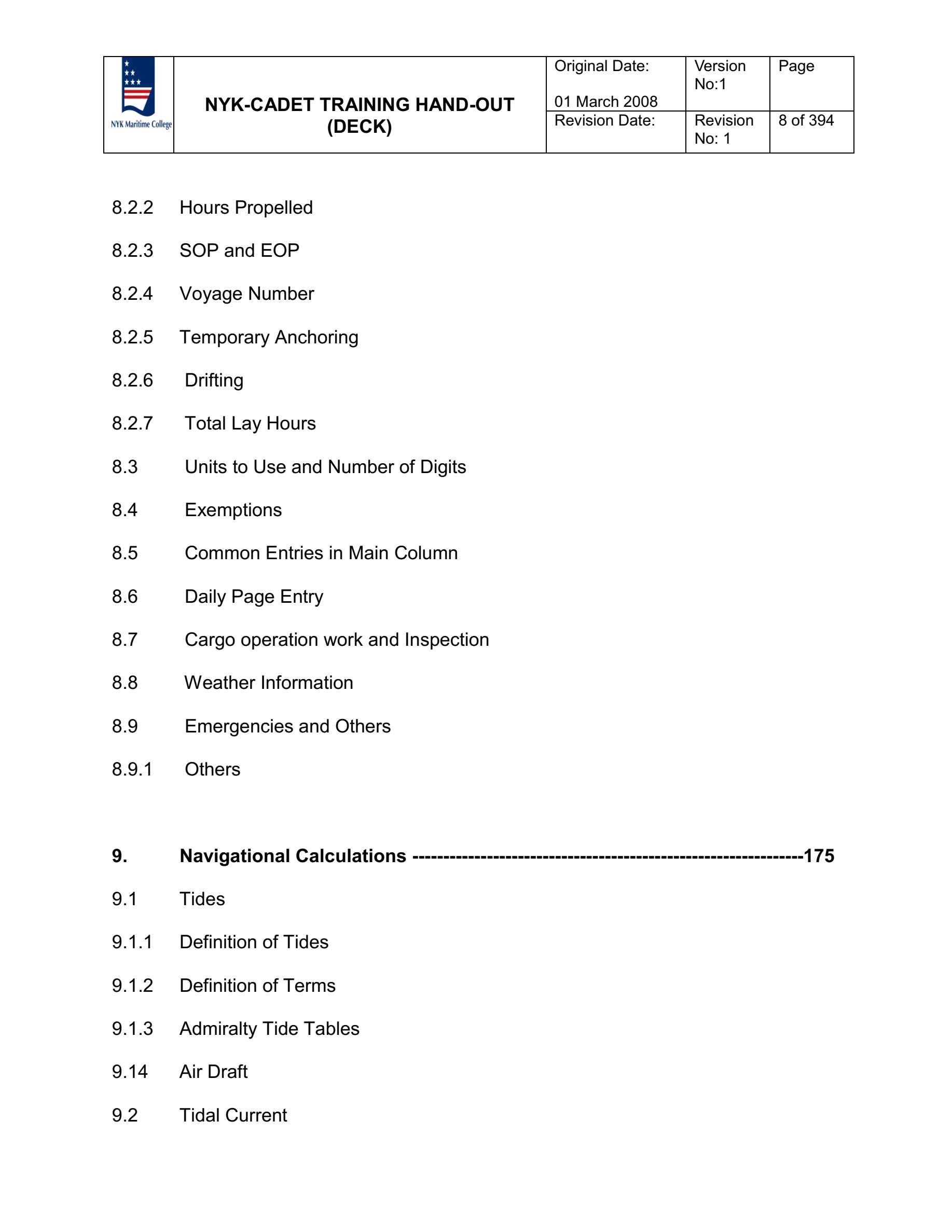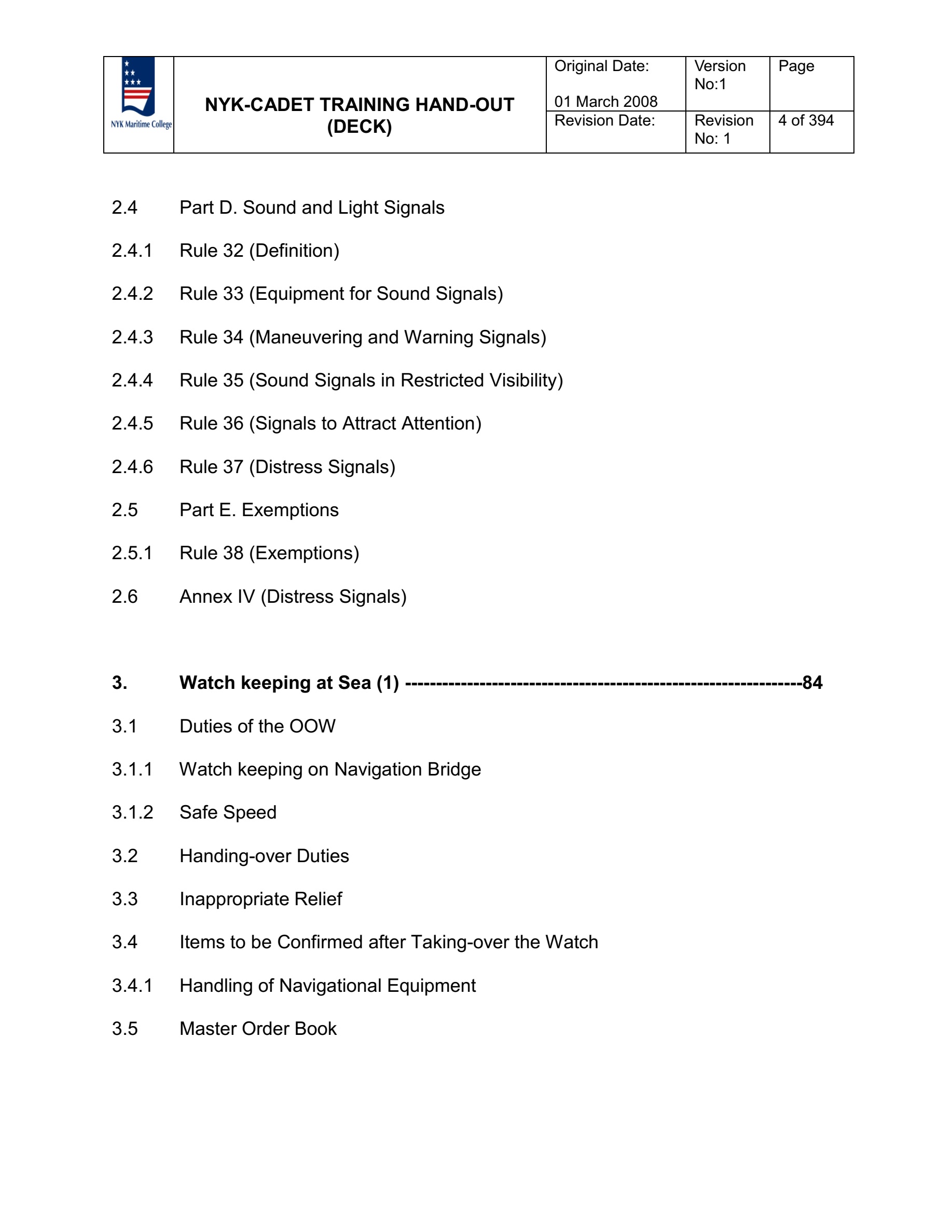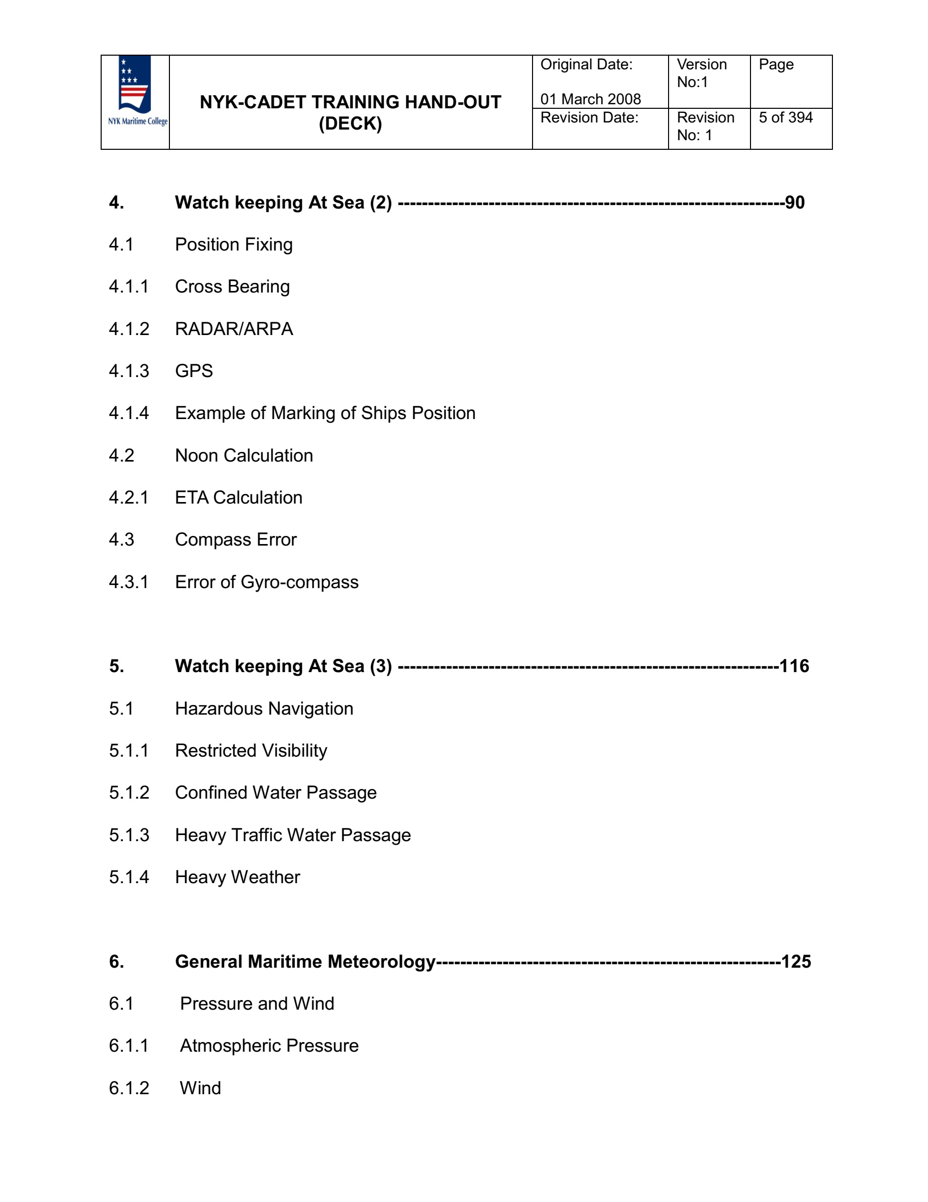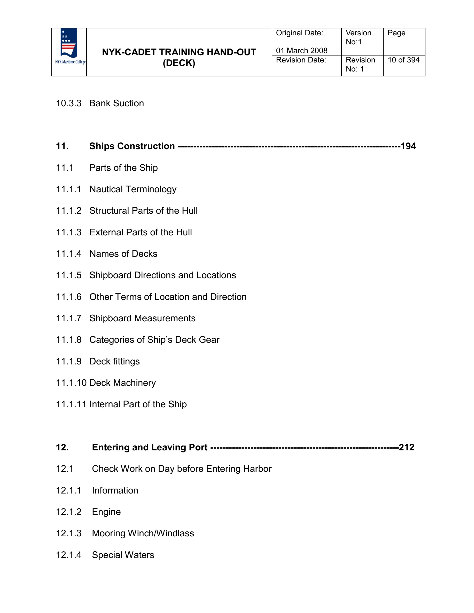 Deck Cadet Booklet for Deck Maintenance - NYK Maritime College [2008, PDF/DOC]