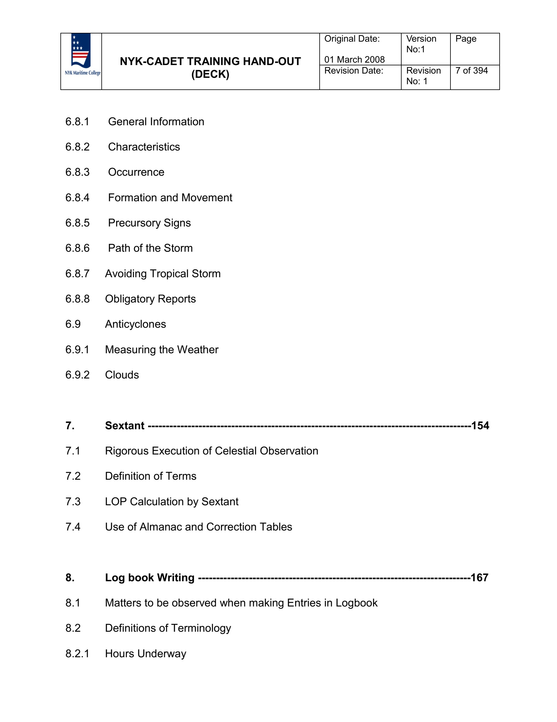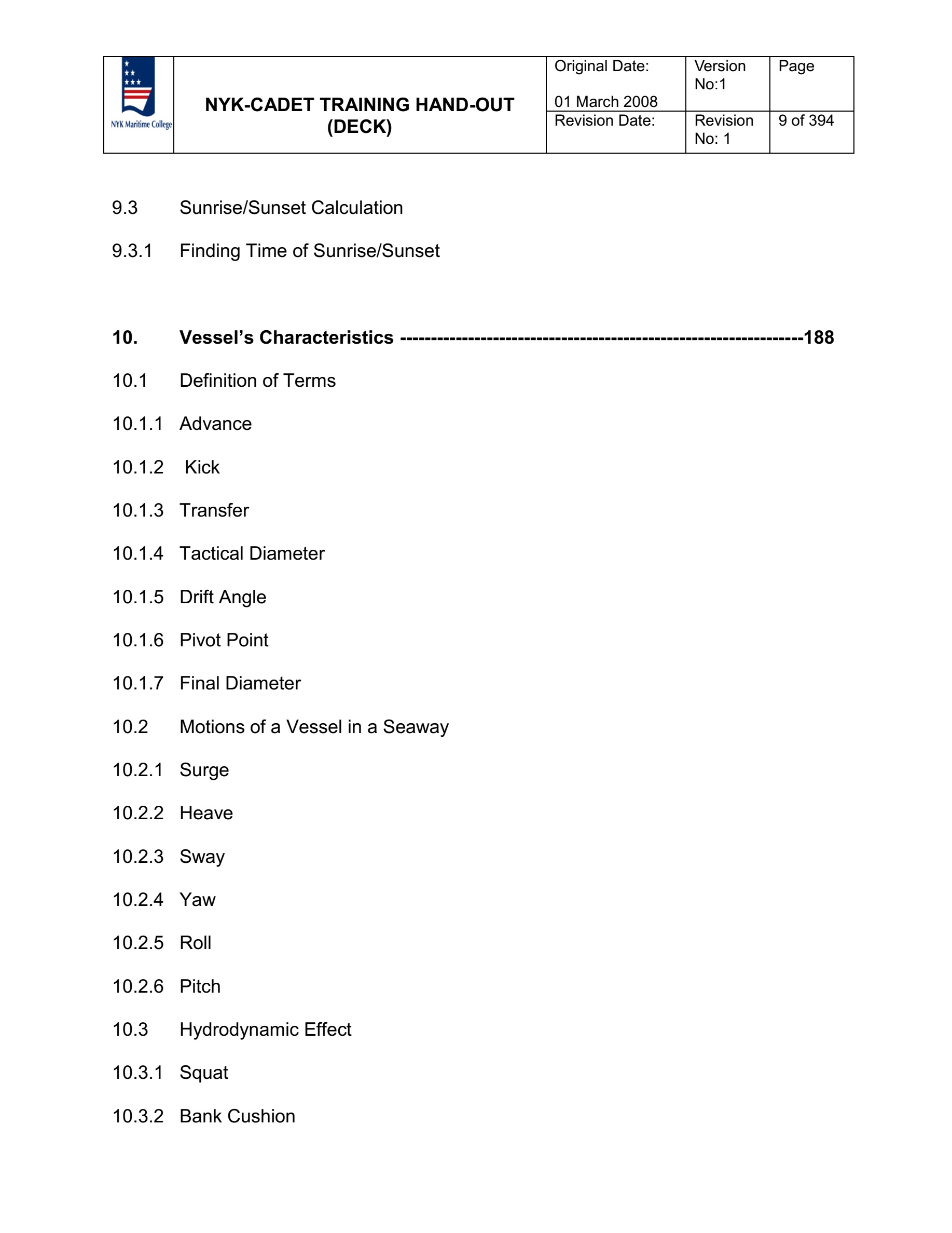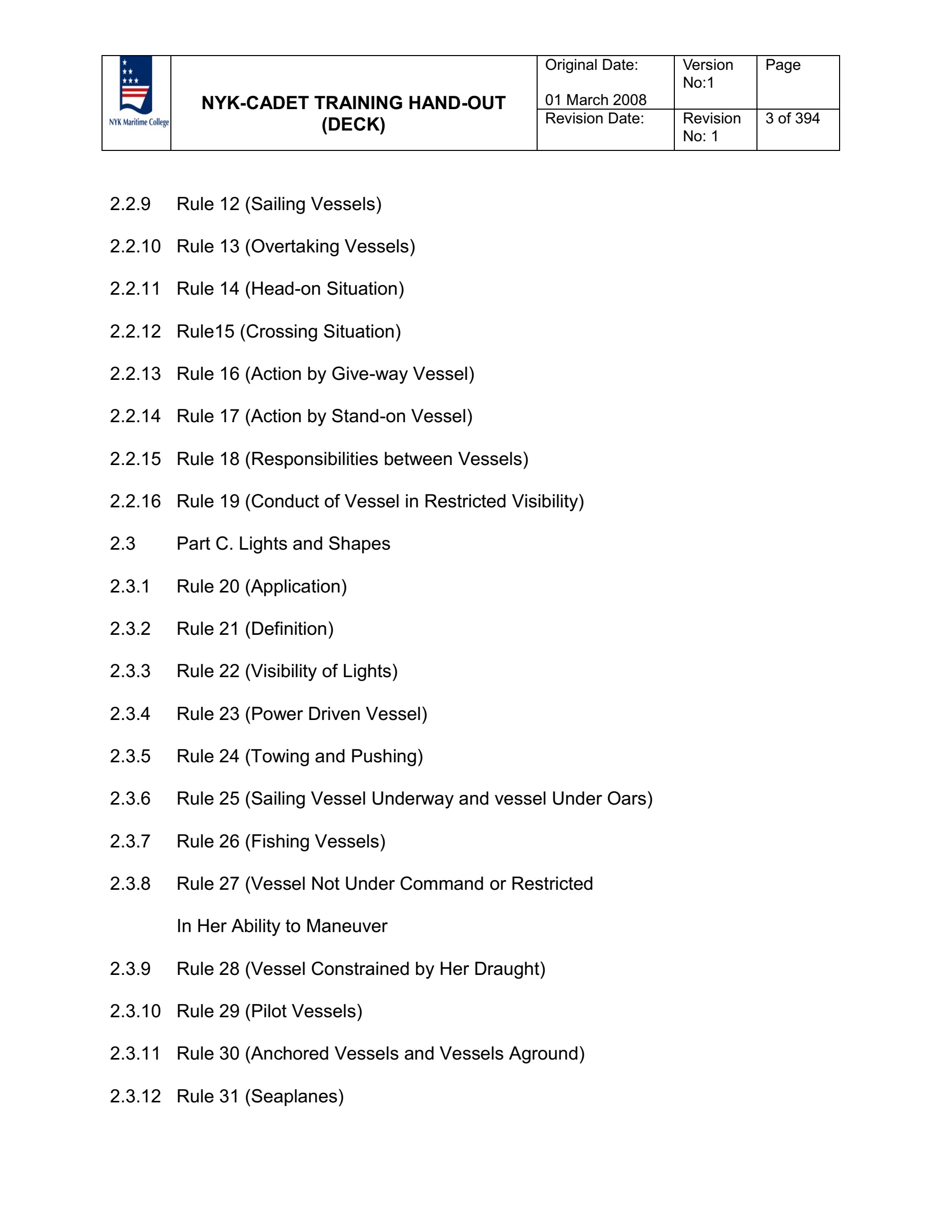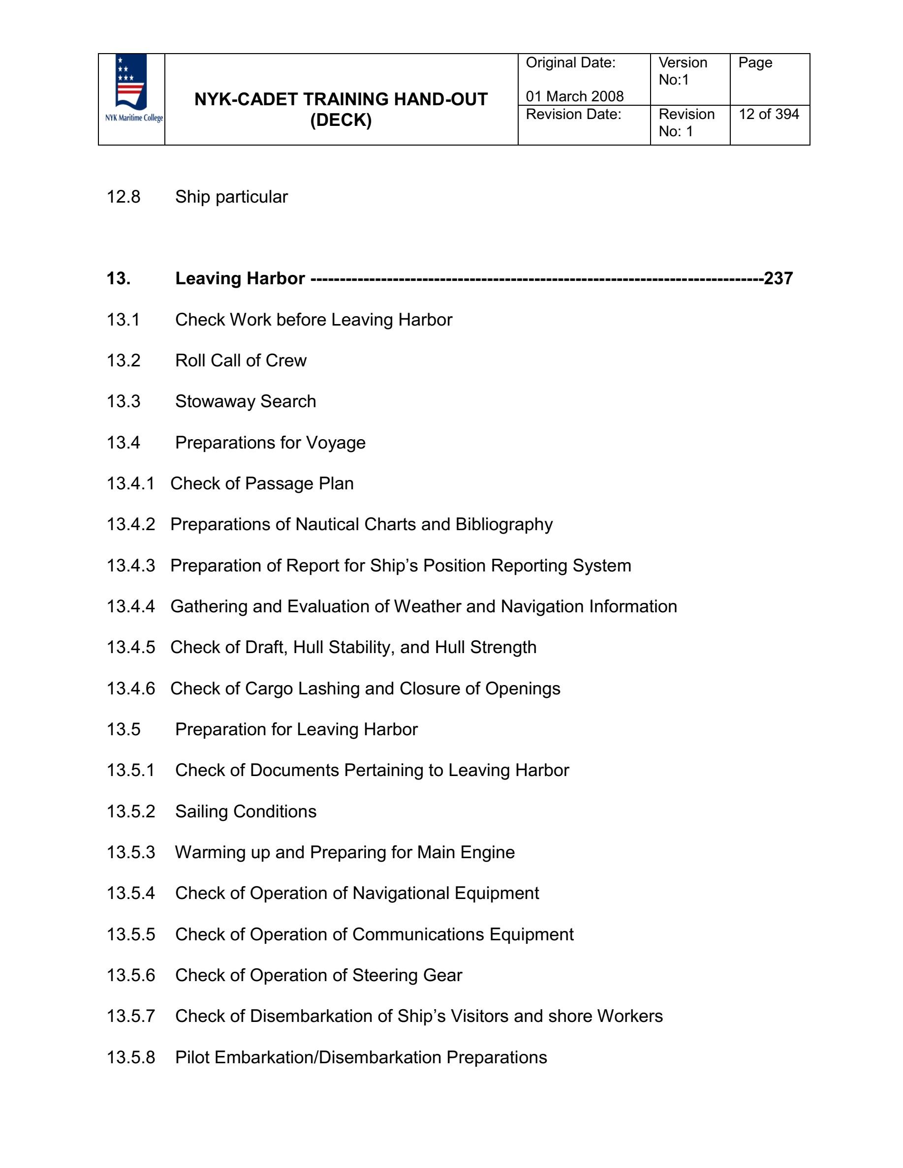Deck Cadet Booklet for Deck Maintenance - NYK Maritime College [2008, PDF/DOC]