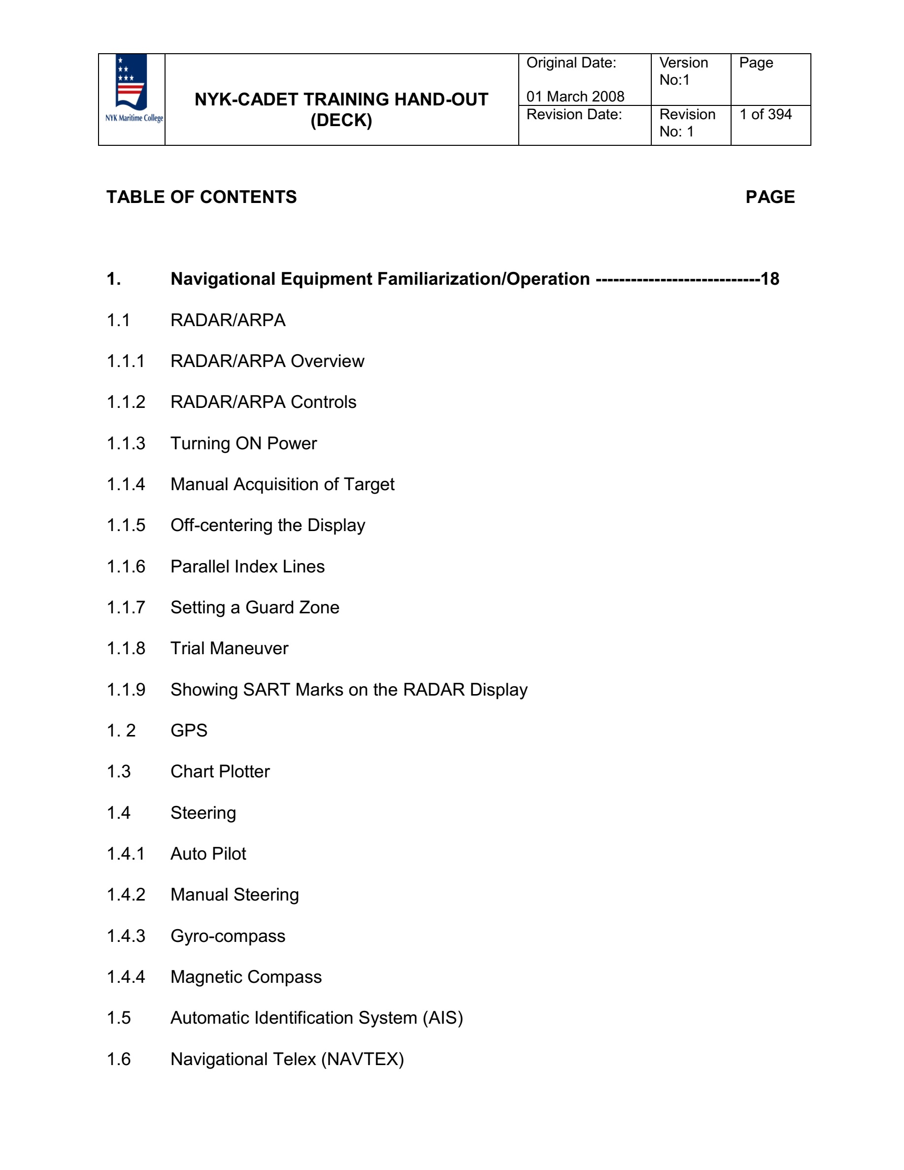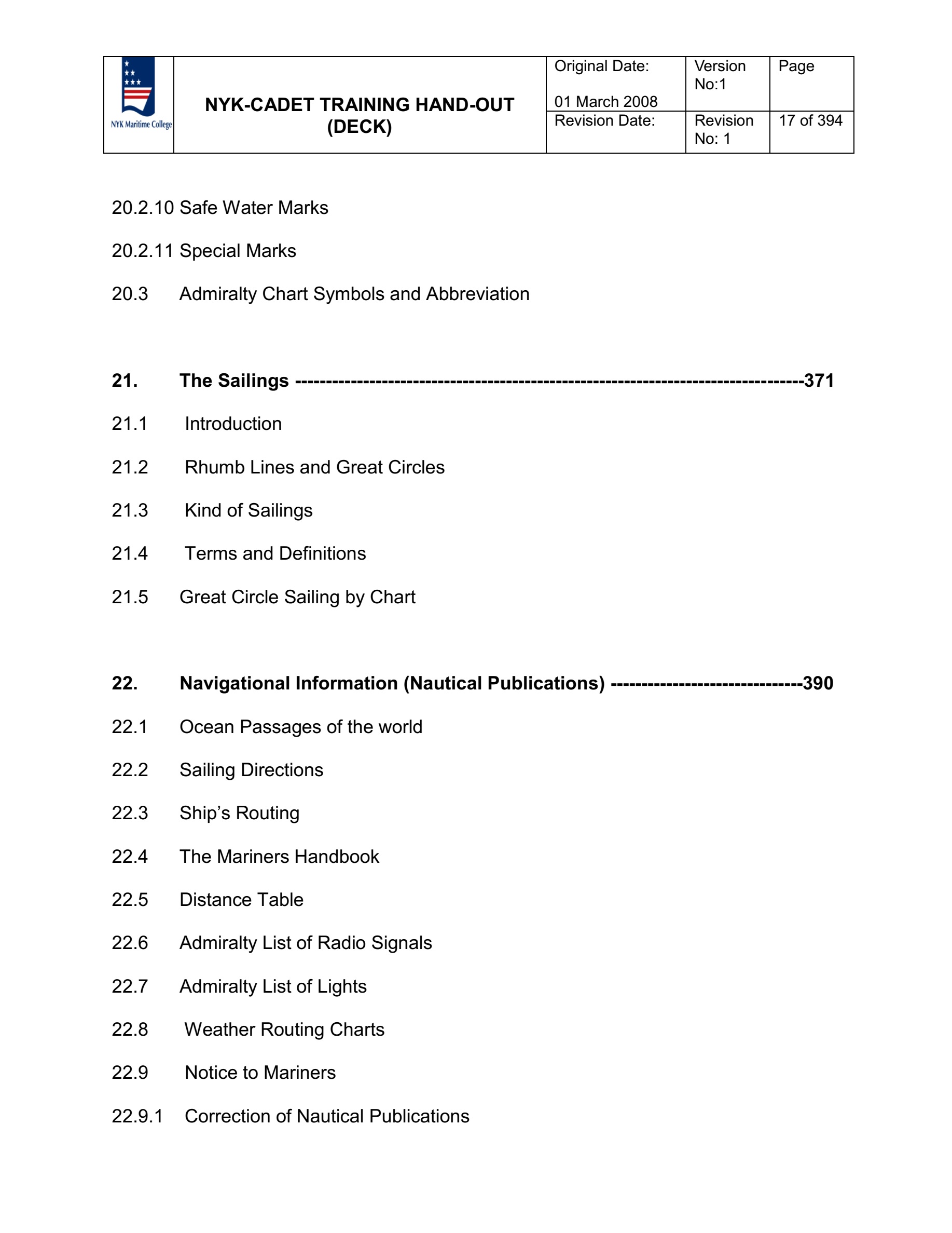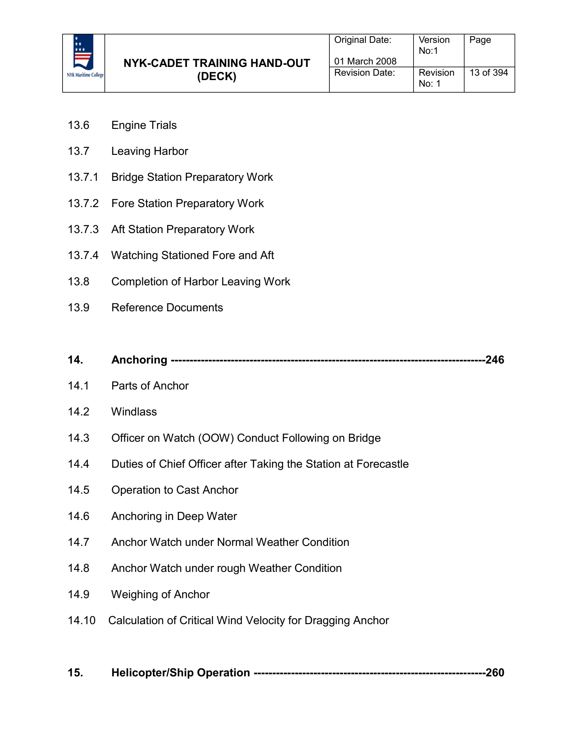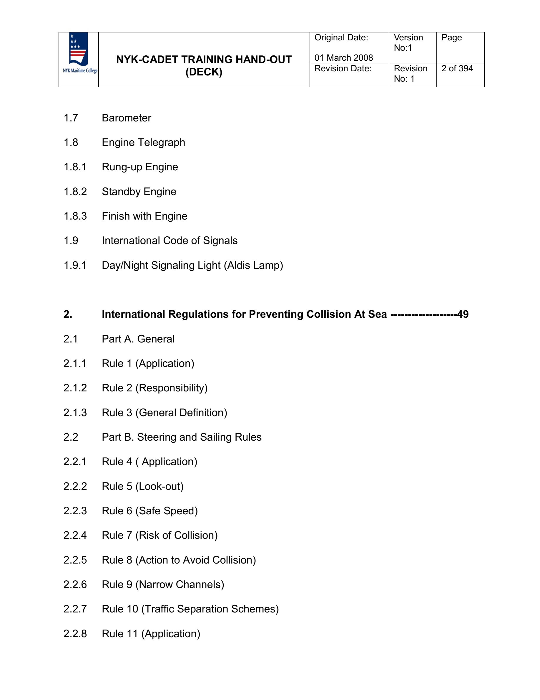 Deck Cadet Booklet for Deck Maintenance - NYK Maritime College [2008, PDF/DOC]