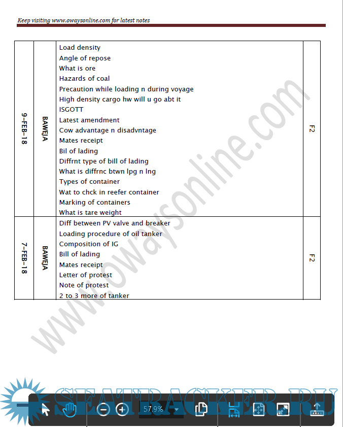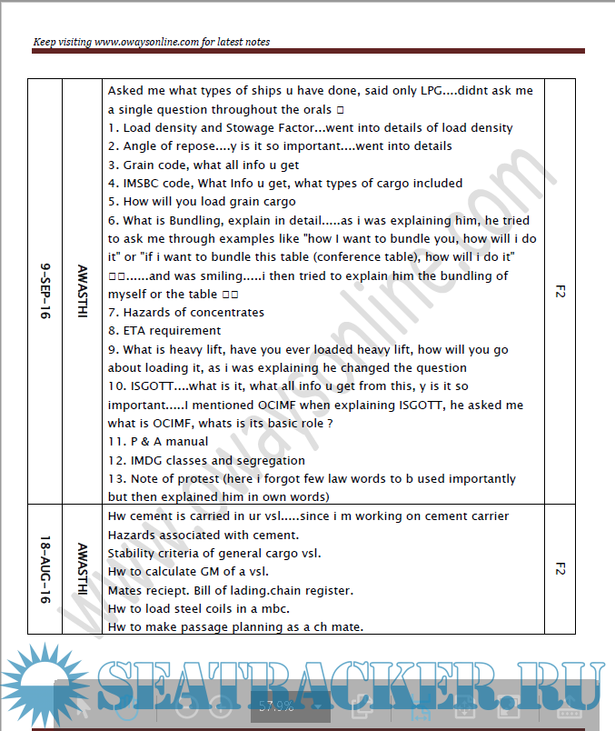 Chief Mates Orals Question Bank updated till FEB 2018