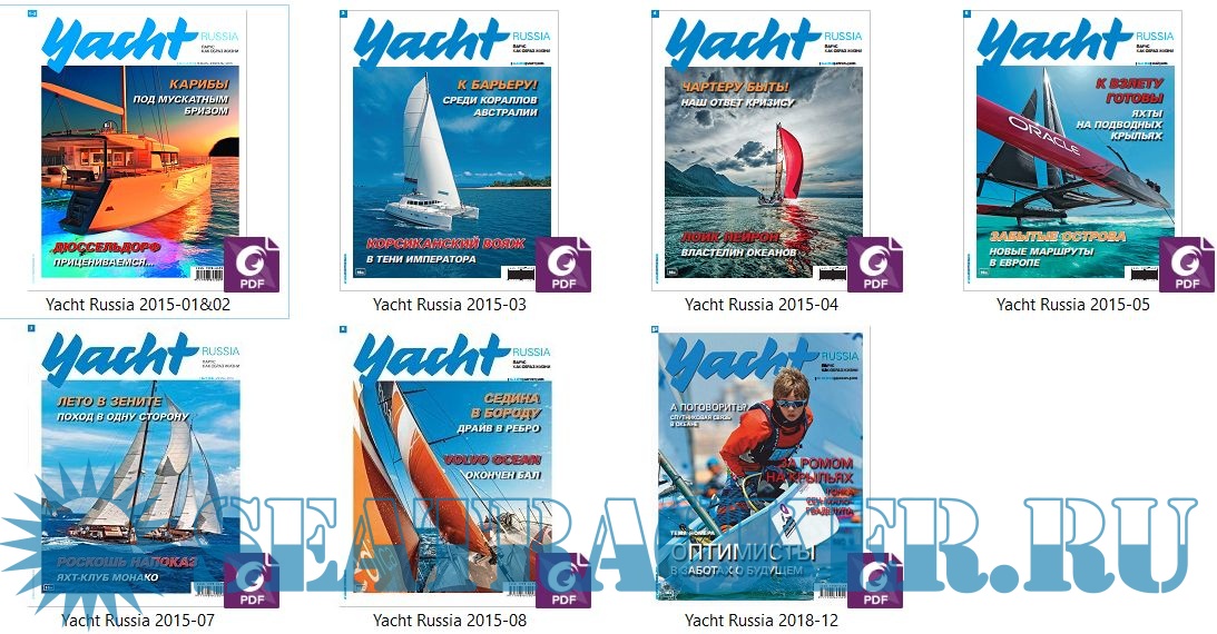 Год выпуска: 2015&2018 Язык: русский Автор: Артур Гроховский (Ред.) Жанр: Периодическое издание (журнал) Формат: PDF Качество: Изначально компьютерное (eBook) Количество страниц: 116 в каждом журнале Описание: Журнал Yacht Russia – партнер знаменитого немецкого журнала Yacht, самого старого регулярного европейского издания о парусном спорте. Выходящий с 1904 года Yacht, сегодня имеющий тираж более 100 000 экземпляров, нашел в лице Yacht Russia, достойного партнера, оперативно информирующего читателей обо всех актуальных проблемах жизни мирового и российского паруса. Описания плаваний и походов под парусами, тесты парусных яхт и практические советы капитанам, информация о технических новинках и новости с дистанций крупнейших мировых регат, интервью с ведущими яхтсменами и яхтенными конструкторами мира, а также исторические хроники – все это сегодня представляет своим читателям журнал Yacht Russia. Отдельно стоит упомянуть злободневные материалы, касающиеся болевых точек развития паруса в России. Журнал Yacht Russia выпускается в России с 2008 года и выходит тиражом 25000 экземпляров. Помимо переводных материалов в русской версии Yacht публикуются отечественные авторы и фотографы, которые профессионально освещают парусную жизнь в России.